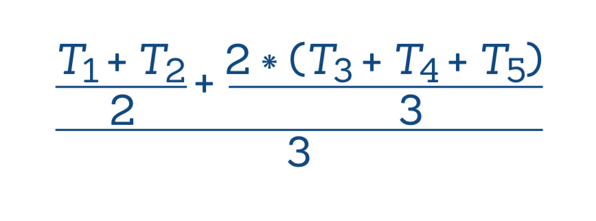 Waarmee de studie dus dubbel zoveel beland hecht aan het gemiddelde van tests T3, T4 en T5 ten opzichte van het gemiddelde van tests T1 en T2.