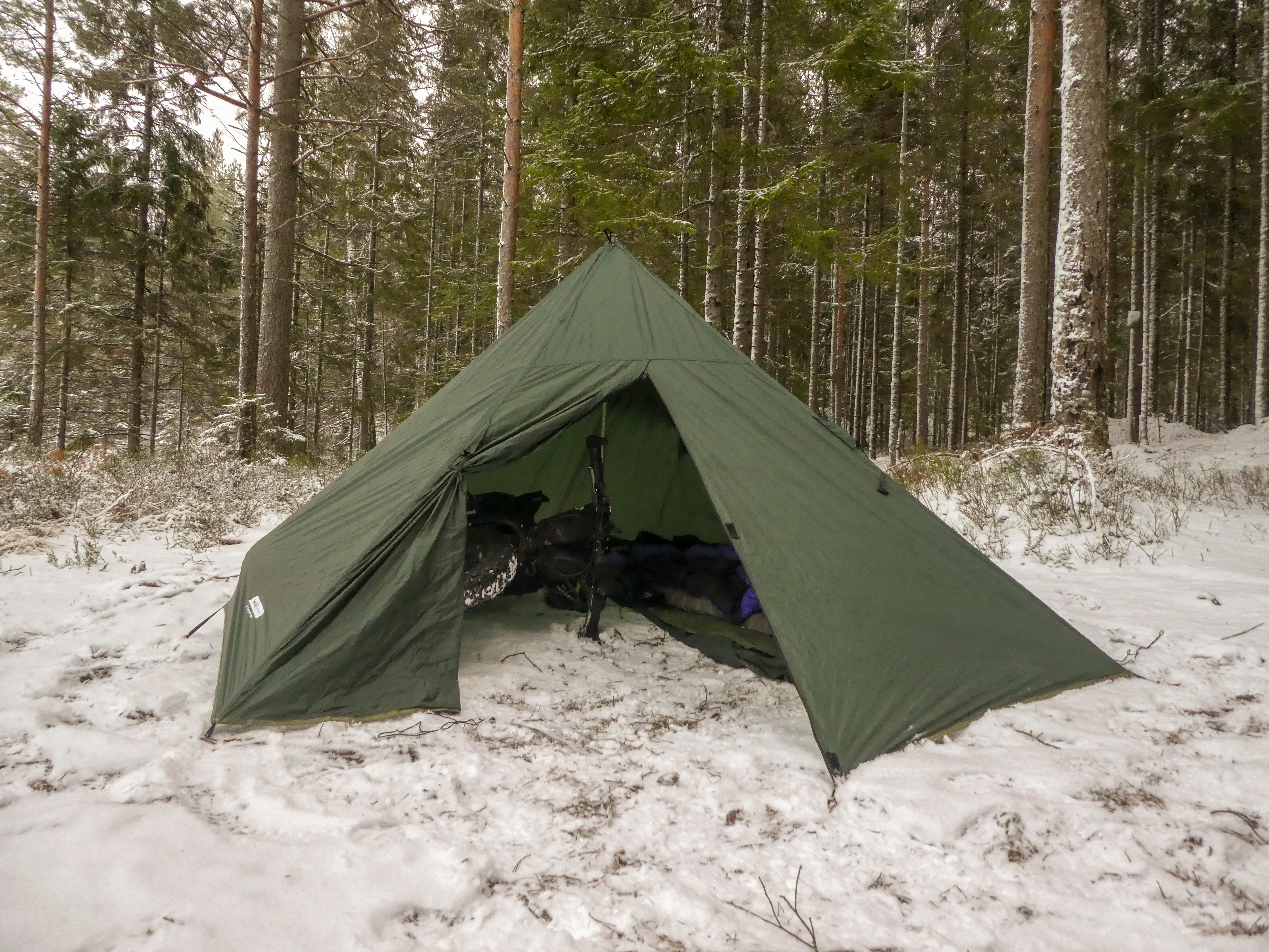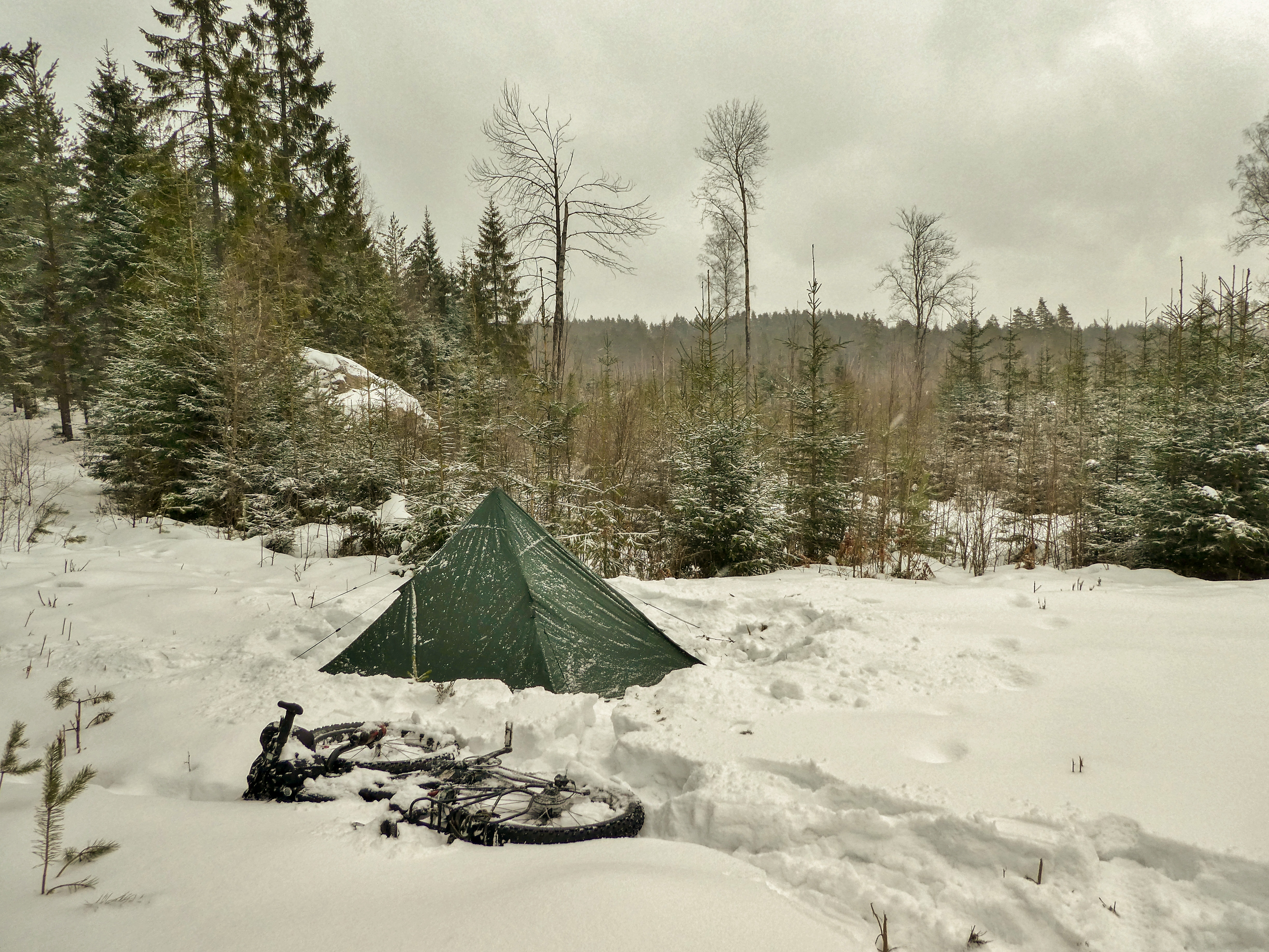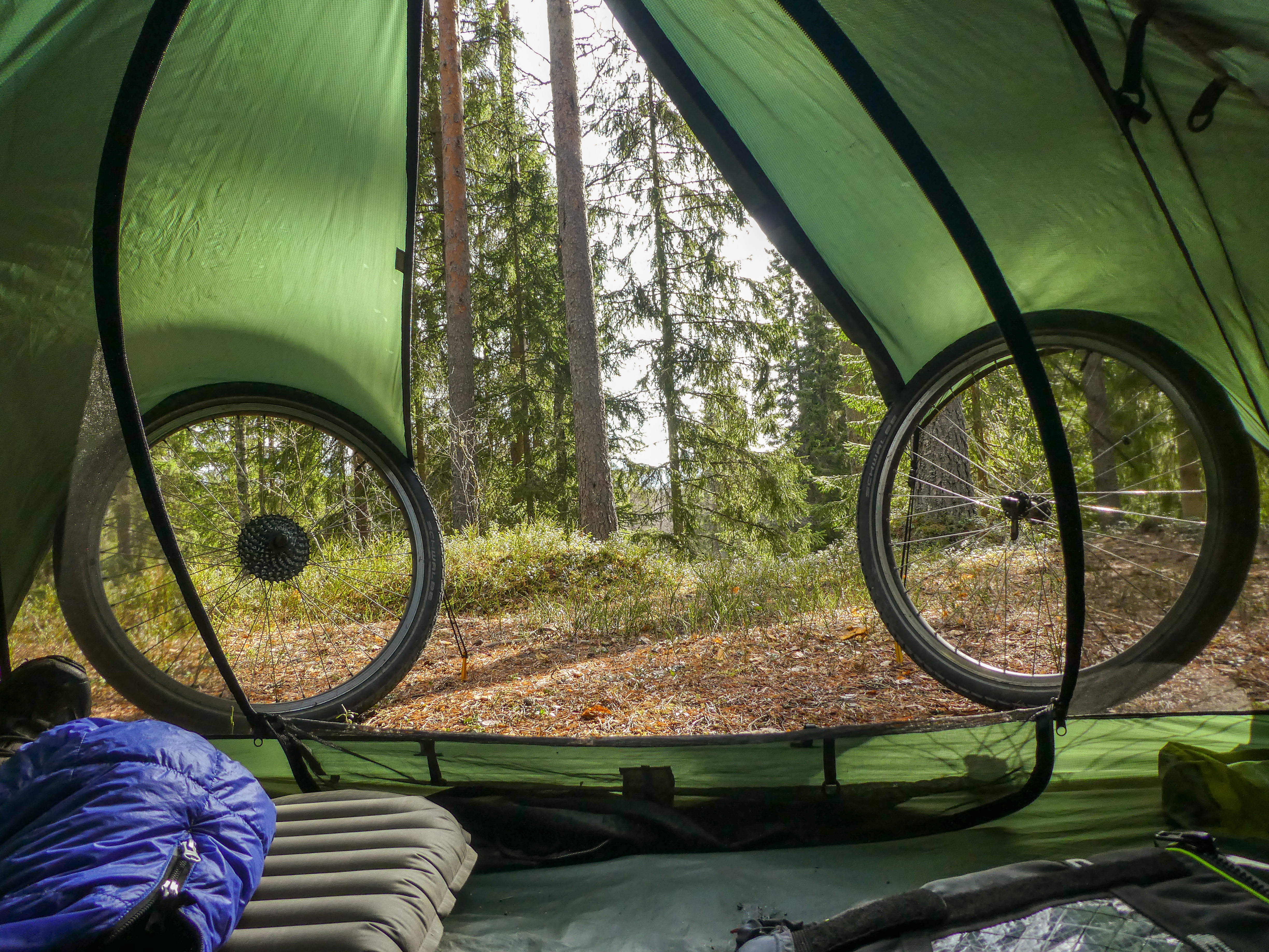 Heb verschillende wintertentjes maar waar de fattie inpast is een circa 2.5 x 2.5m tipitentje, weegt geloof ik net iets van 1kg maar in de sneeuw hoef ik geen binnentent en dan is het maar 460gram. Geloof dat je dat wel een bikepackingtentje mag noemen, alhoewel 2.5 x 2.5m geen tentje meer is maar eerder een balzaal.