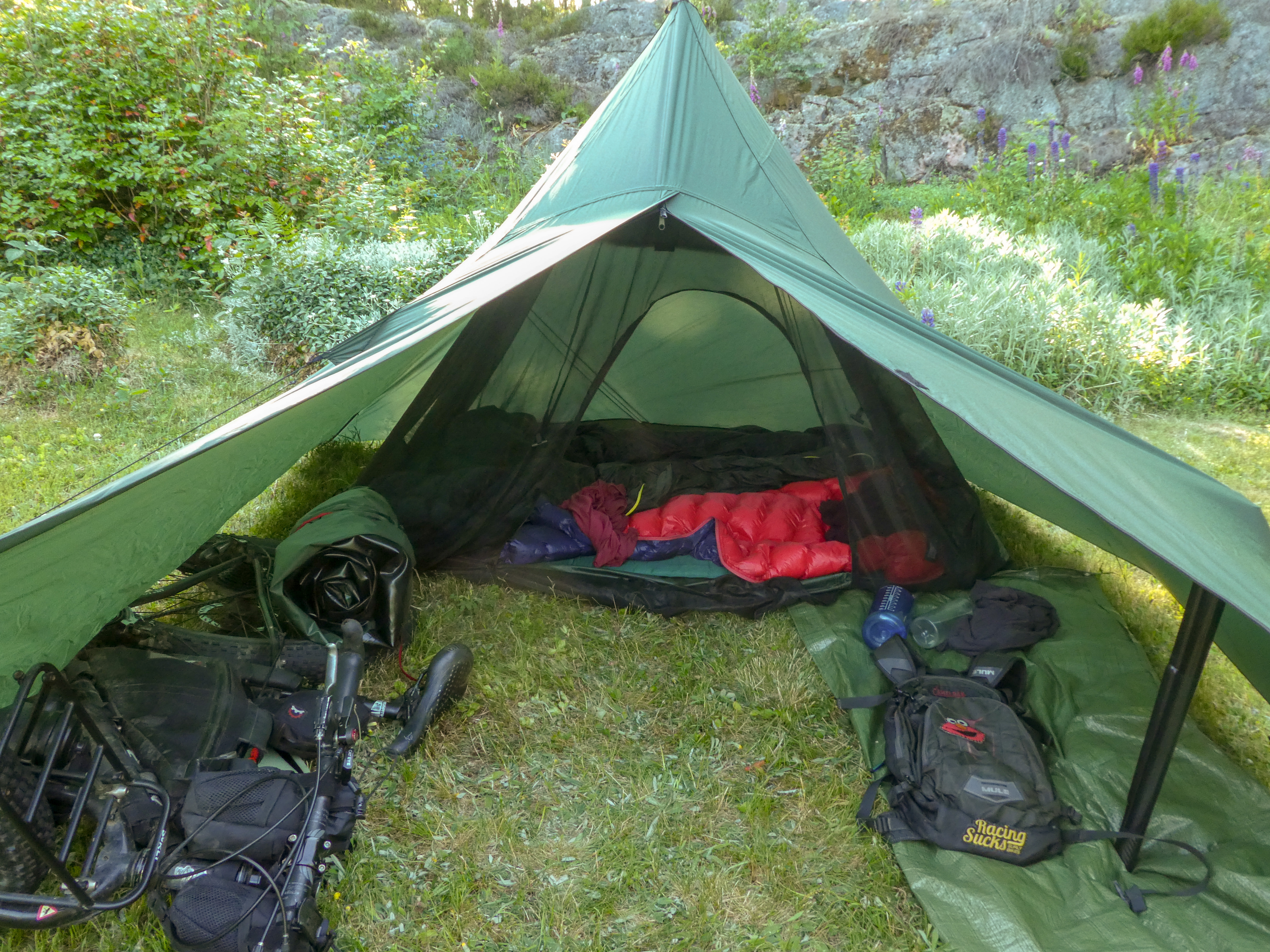De zomerschoenen voor in de bergen en het koude water daar zijn Salomon Conquest GTX women, die zijn hoger dus beschermen beter tegen rotsen en moeilijk fatbike-gedoe.