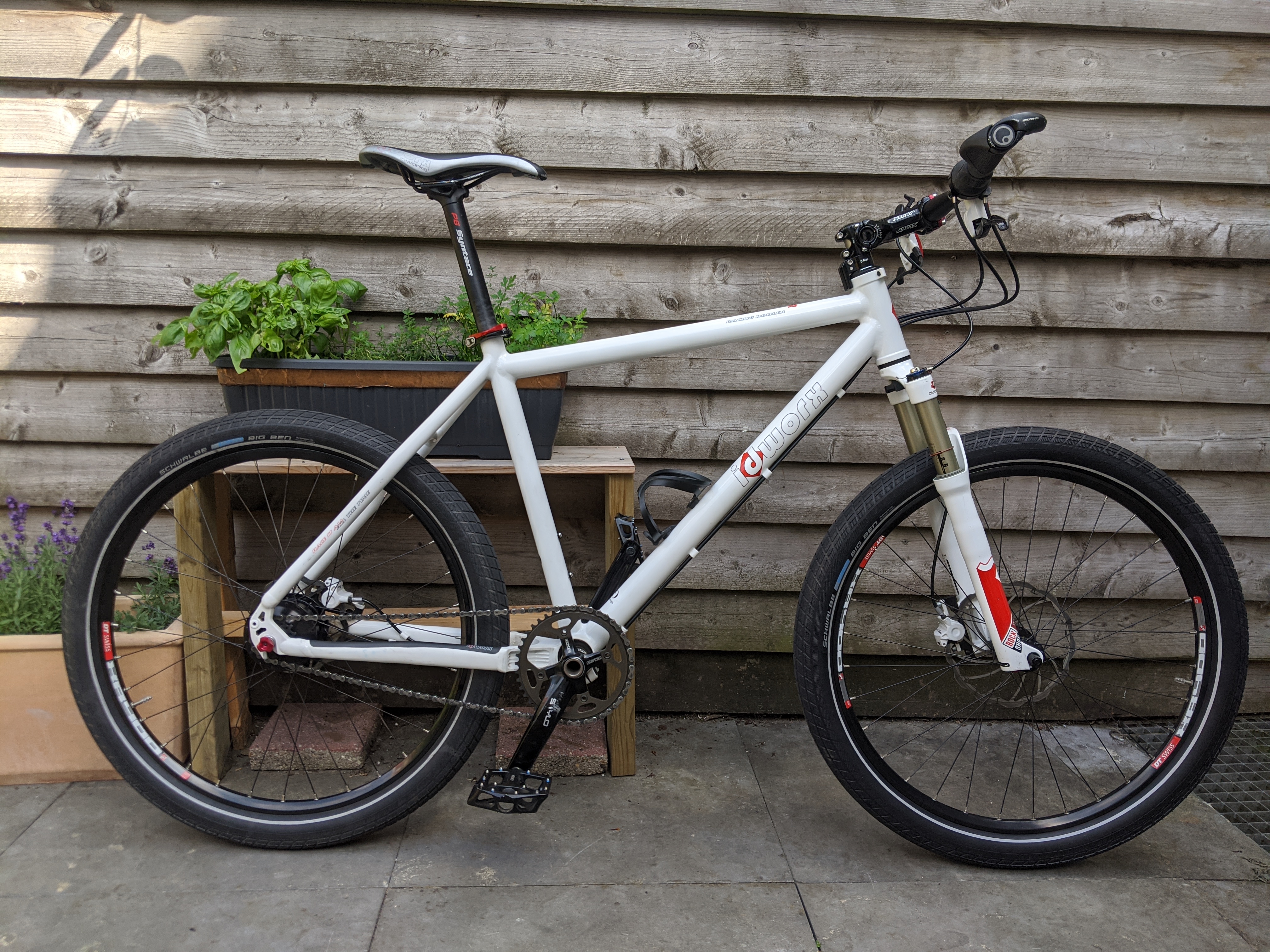 TL;DR: deze fantastische fiets heb ik recent tweedehands gekocht met het doel om hem om te bouwen tot volwaardige tourfiets die gebruikt kan worden voor familievakanties. Hoewel ombouw prima mogelijk is, lijkt hij toch te sportief voor me om het project voort te zetten, en zeker niet familievakantie-proof
