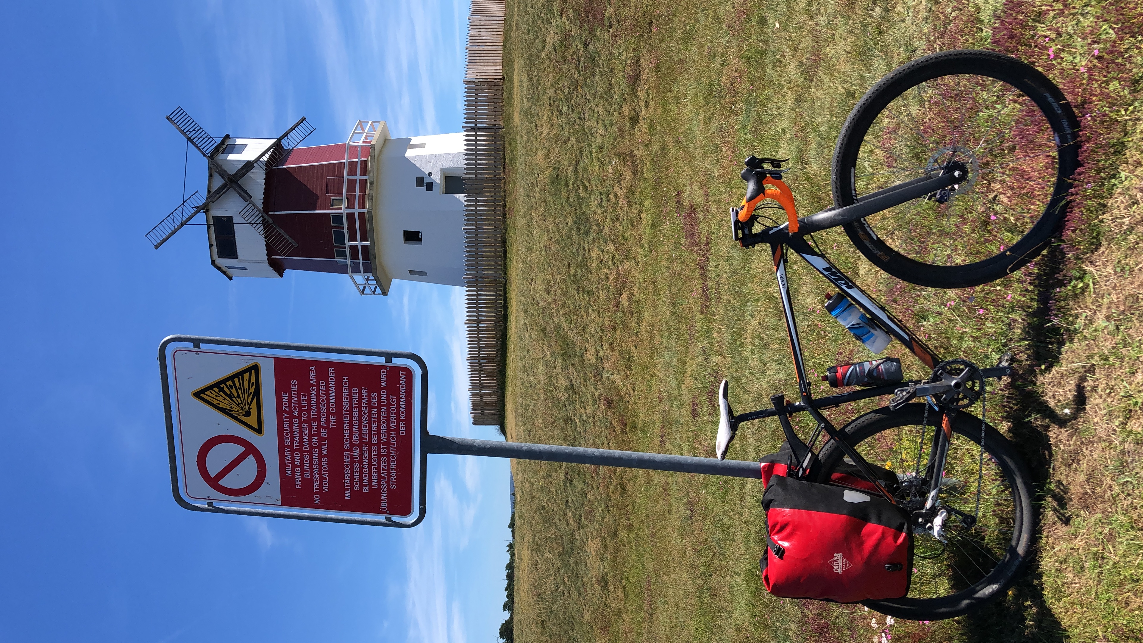 Wordt aardig warm en ik ben pas op de helft van mijn dag. Stuk bij Bielefeld is stedelijk en minder fraai. Nu maar hopen dat het Senne terrein opgesteld is. Normaal mag je er alleen op zaterdag en zondag overheen. Ik heb geluk, de slagbomen staan omhoog, geen rode vlag of rood licht. Ik waag de gok dan ook maar en rij de lange klinkerweg op. Eerste 6 km door de bossen, later het open gedeelte met ruïne van oude kerk. En veel tanks die dienst doen als oefen doelwit bij schiet oefeningen. Het molentje aan het van de weg is erg bijzonder en ik snap niet echt wat de functie is. De kasseien weg blijkt uiteindelijk 14 km lang te zijn en vind hem lang zat, tenminste dat vind mijn kont.