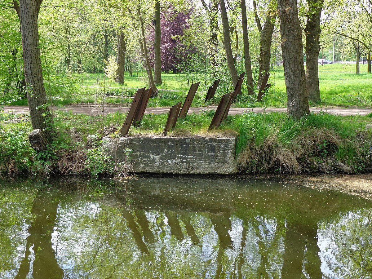 In Blauwkapel had ik nog anti-tank versperringen gezien: van die rijen betonnen blokken in het gras tot schuin staande stalen H-profielen die uit de weg staken, meer dan een meter hoog.