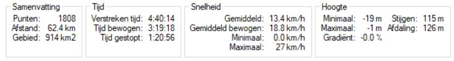 De route van gisteren, na het verwijderen van alle vastgelegde punten tijdens het koffie-thee-drinken: 62,4 km.