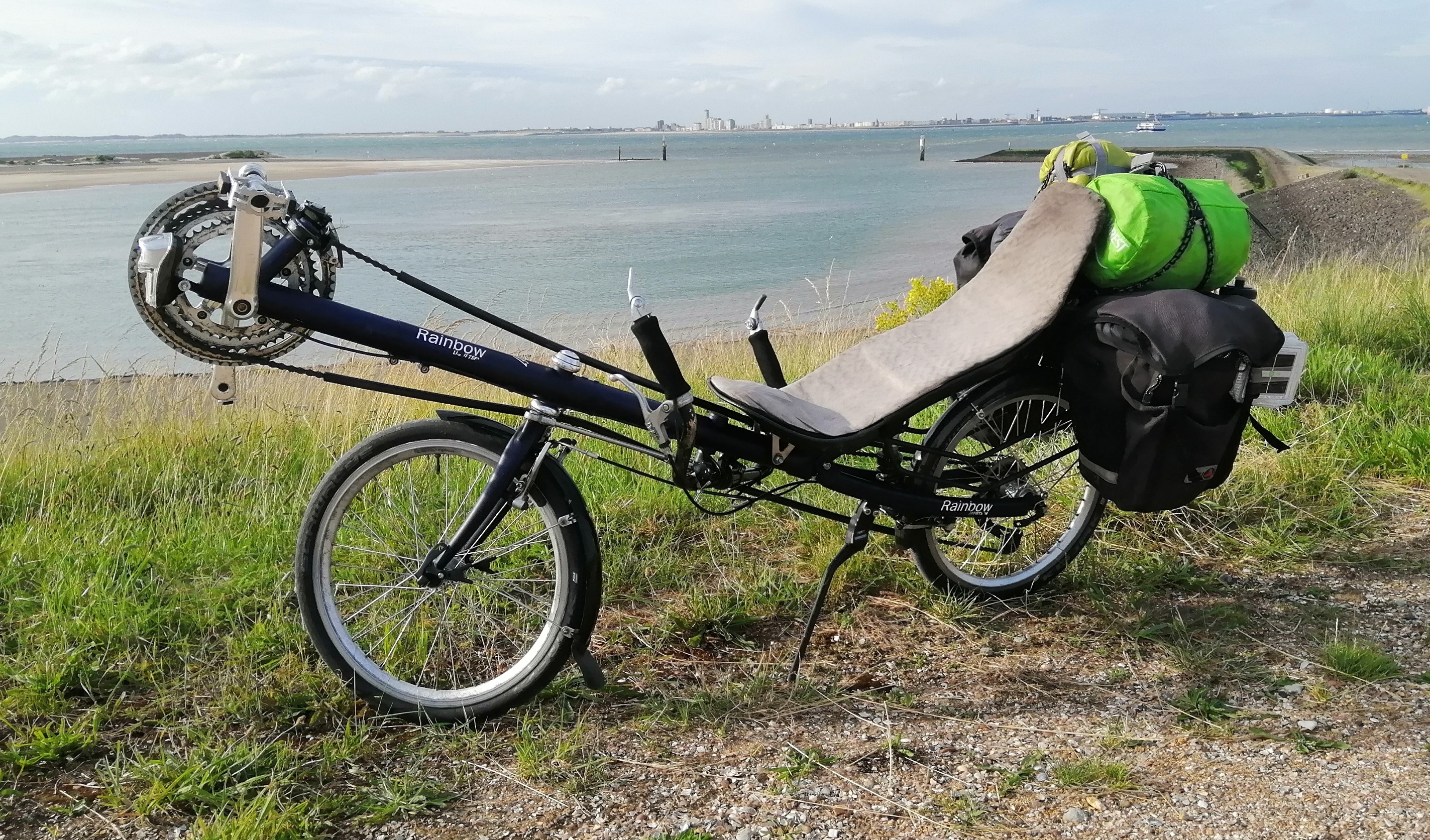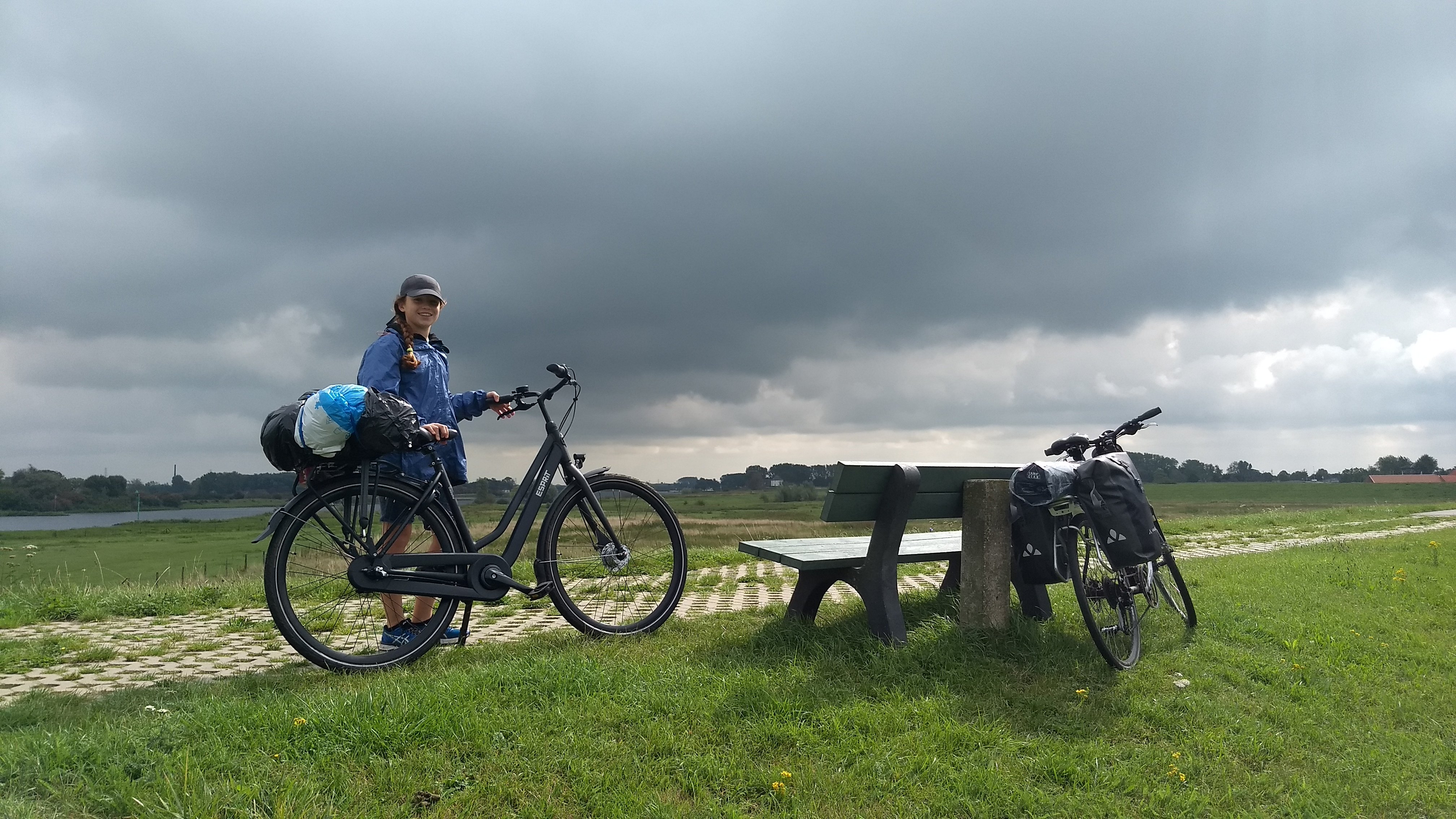 Ik stel fiets en mijzelf (M 1965) even voor. De fiets heb ik in 2008 gekocht ter vervanging van een mountainbike, omdat ik schelpenpaadjes toen leuker vond dan mtb-en. Deze zomer had ik opeens zin om met mijn dochter (11) een weekend met de tent op de fiets er op uit te gaan. Een oude bagagedrager paste er precies op, tassen gekocht, oud tentje mee (inmiddels vervangen, viel uit elkaar).