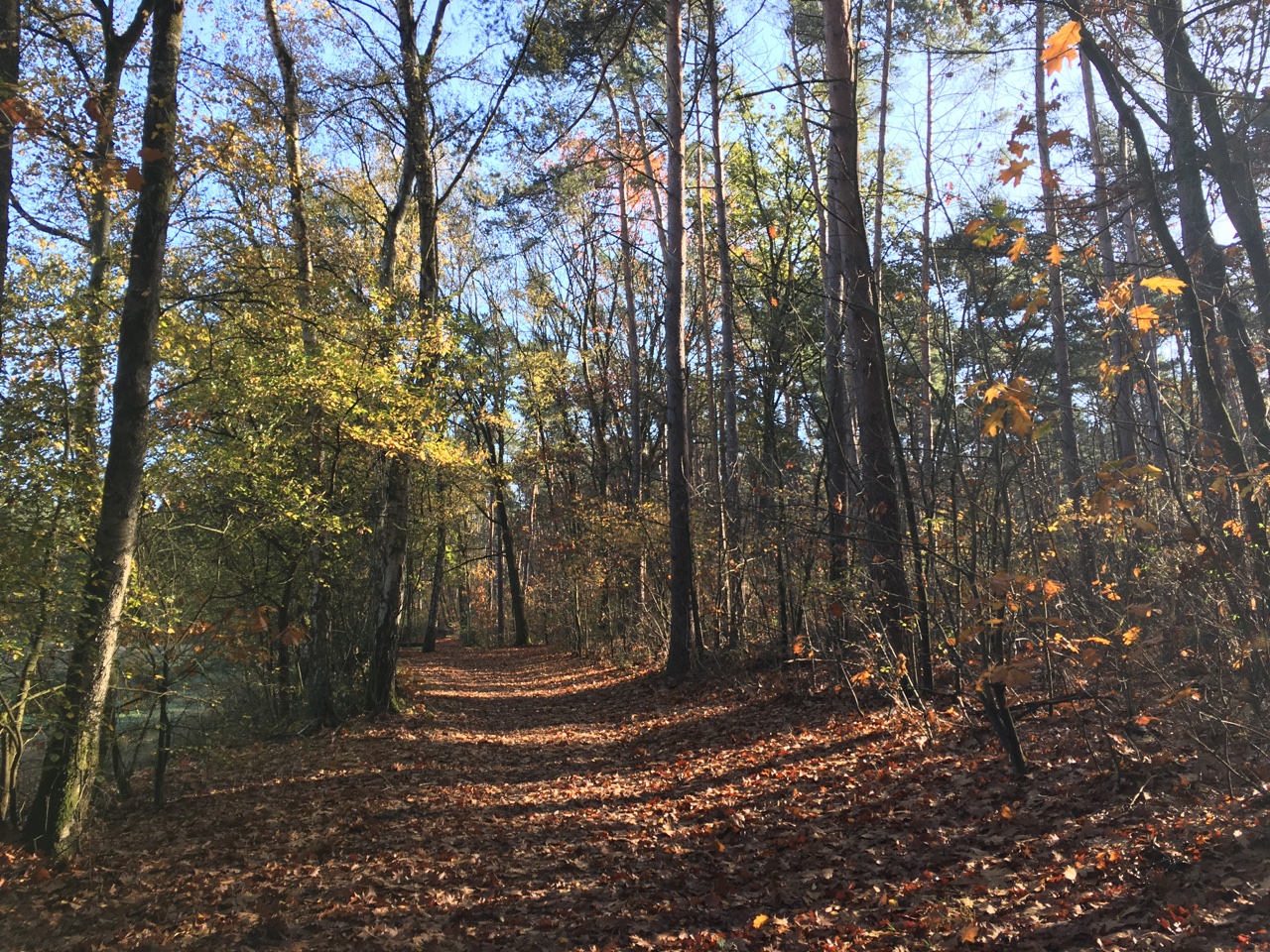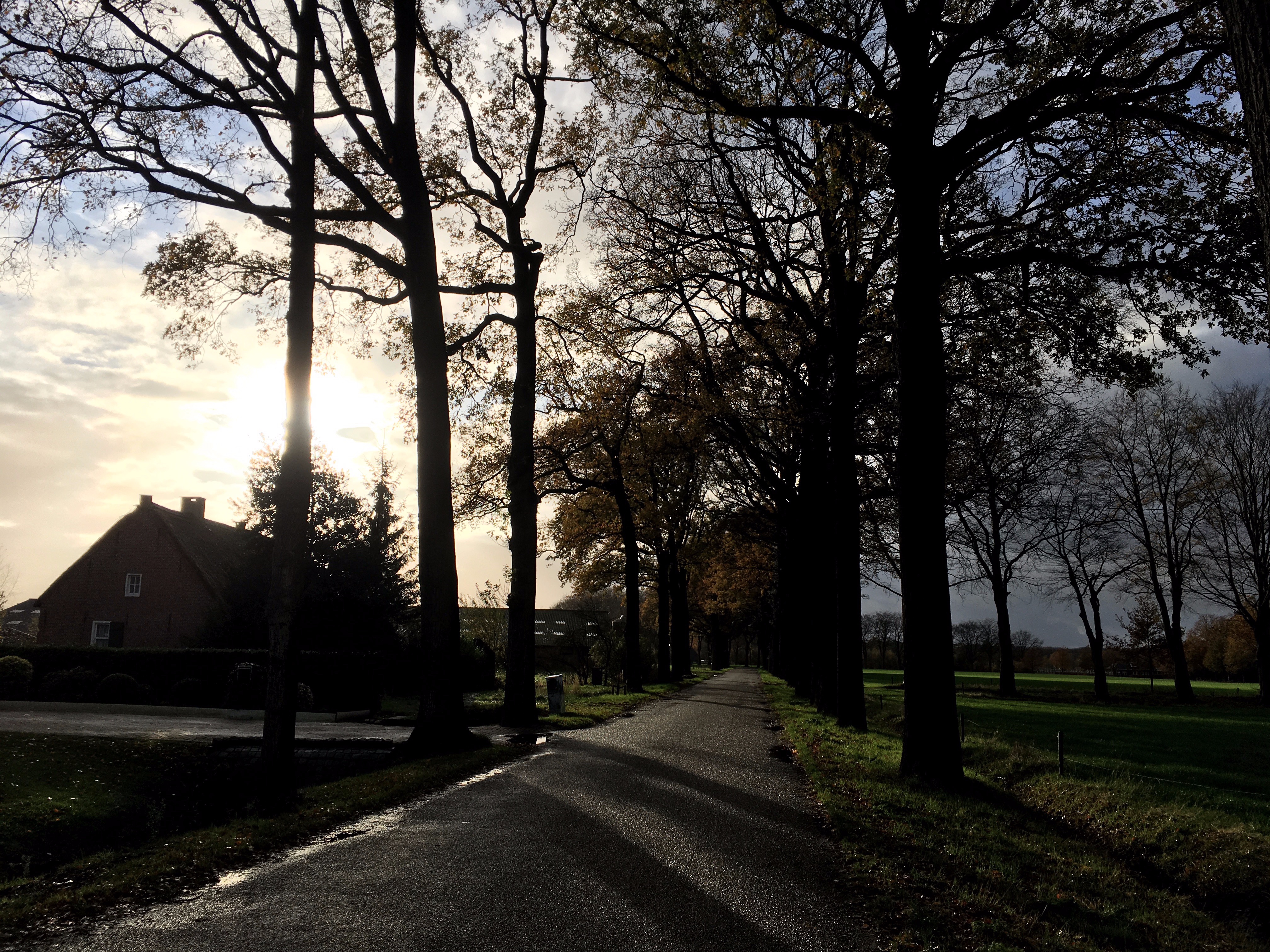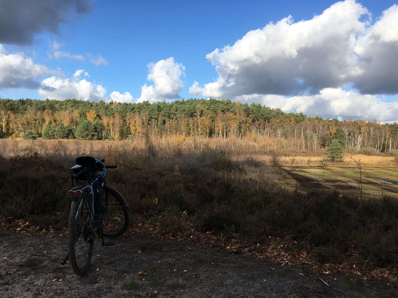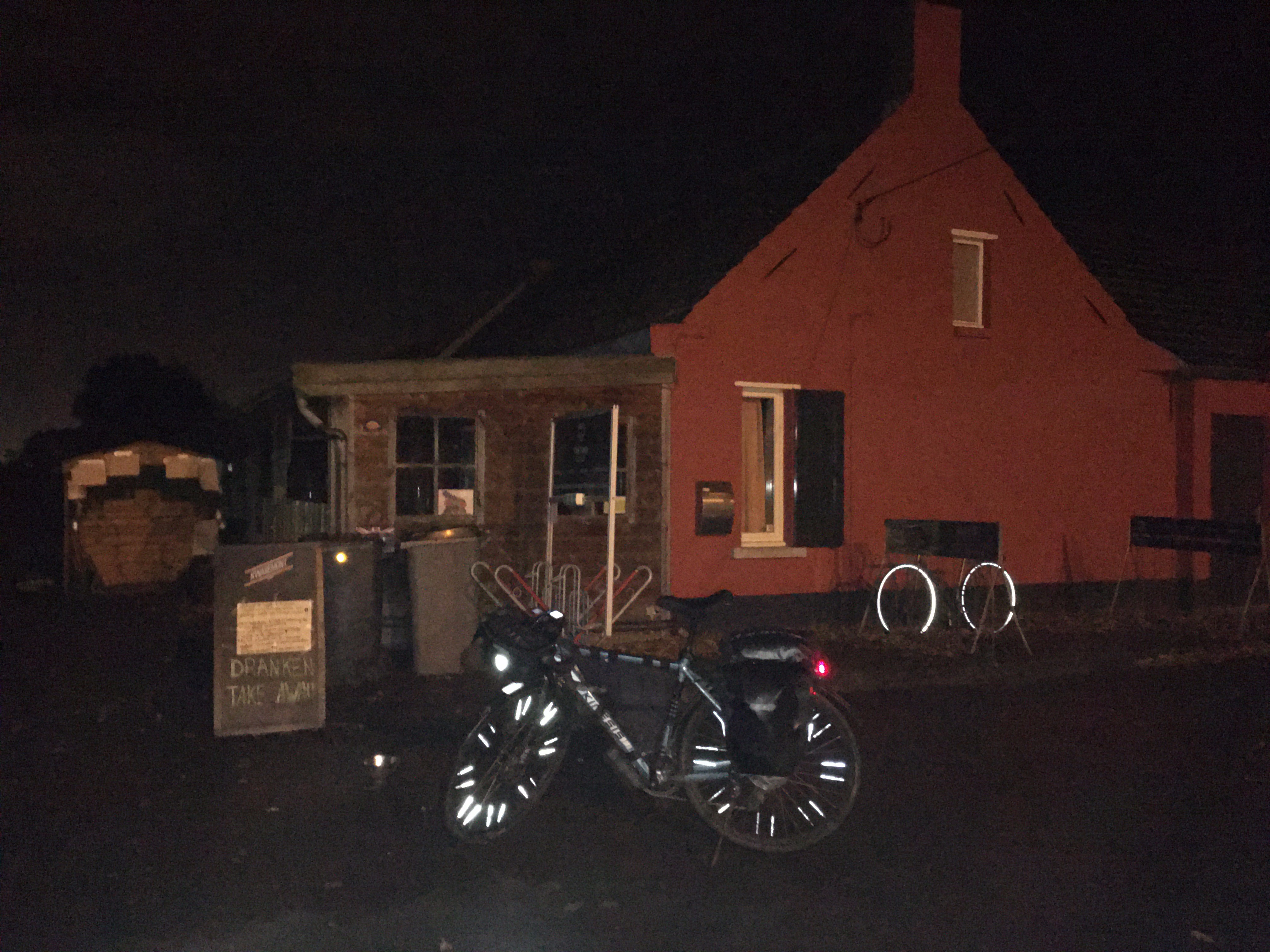 Nog een pittoresk plaatje op 2km van huis. Net voor het donker binnen! En da's maar goed ook, want er zit geen licht op deze fiets. Ik moet toch nog even wennen aan de korte dagen. Door het mooie weer er niet aan geacht voor de zekerheid nog lampjes en een reflectievestje mee te nemen.