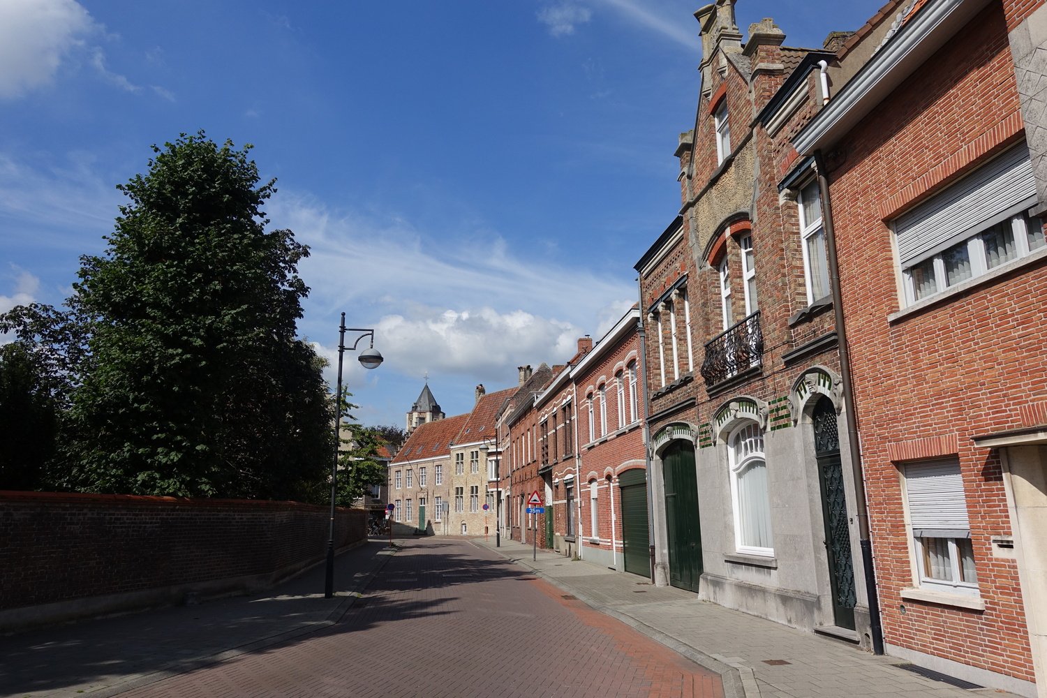 Nog geen oplossing? Het weggetje op deze foto's staat niet op Streetview, maar zo'n 10 meter rechts ervan ligt een doorgaande weg, waarvan dit weggetje aftakt, heeft wel Streetview. Op de achtergrond een kasteel.