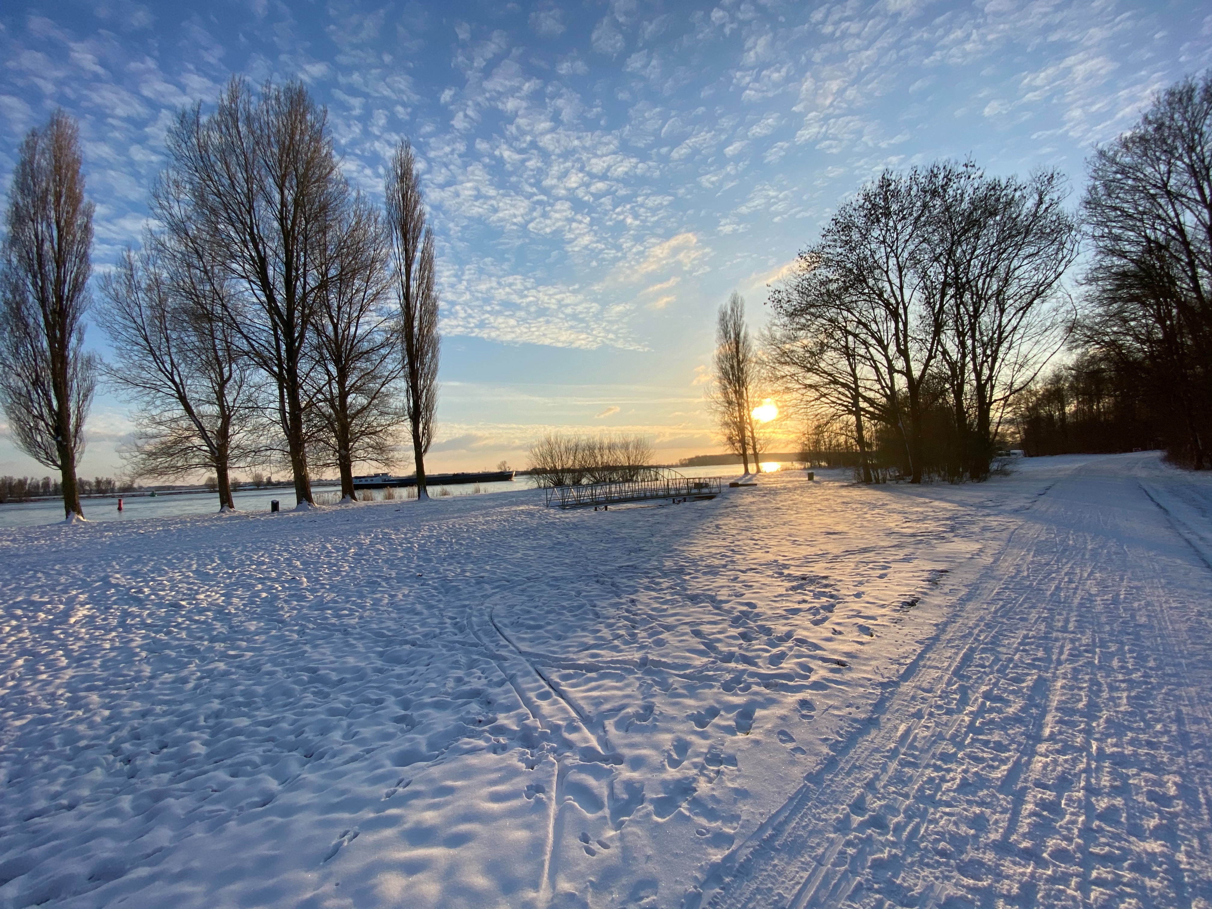 Disclaimer: Vanochtend in de net gevallen sneeuw was het nog niet glad, enkel mijn achterwiel schoof soms even weg in de diepere sneeuw. Als sneeuw aangekoekt is en het wat dooit, kan het glad worden. Met dit bericht wil ik niemand aanzetten tot waaghalzerijen in de sneeuw/op het ijs