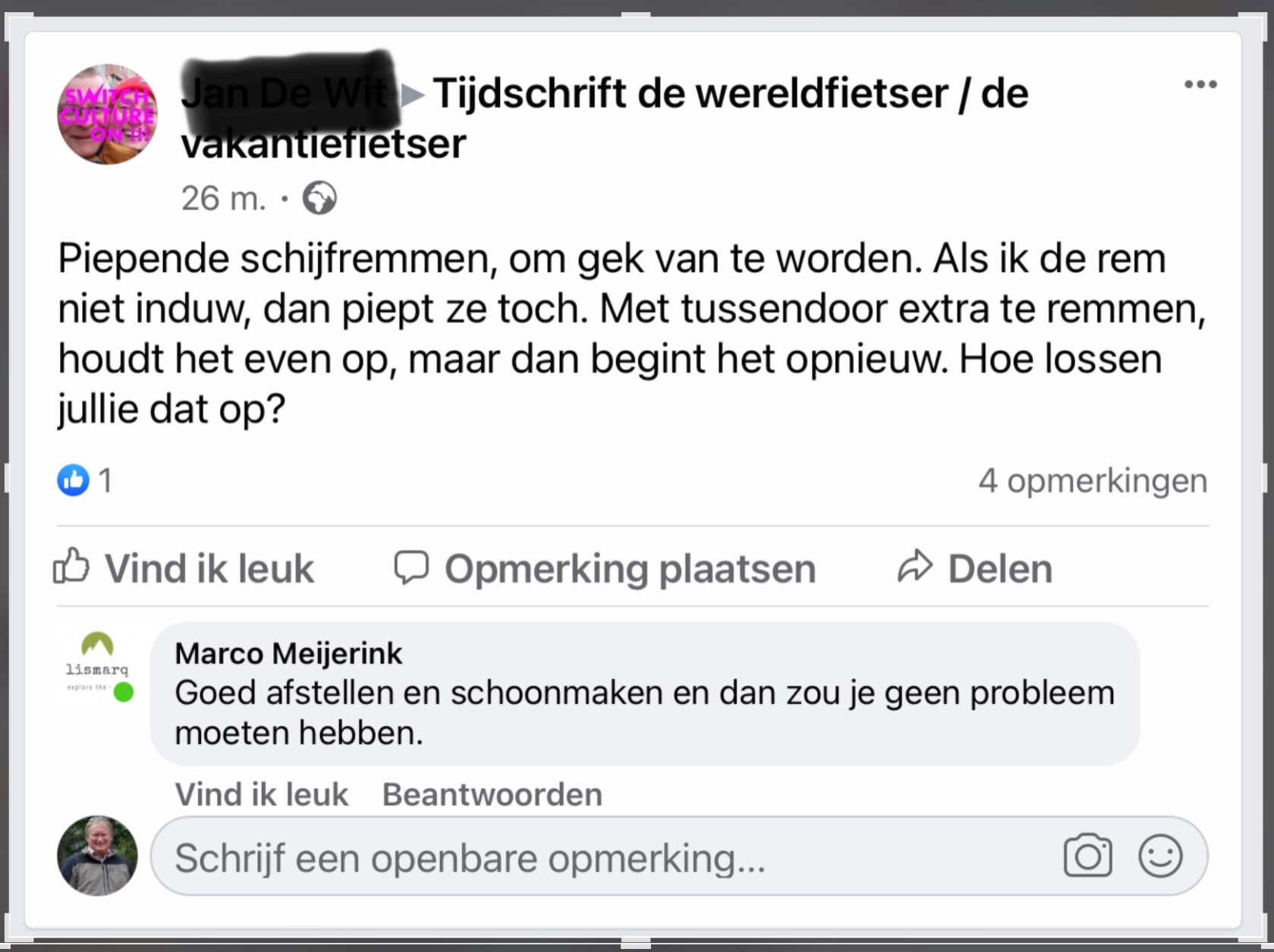 tag:Je kunt ook de afstelschroef aan het stuur een eind aandraaien, de blokjes vastzetten en het schroefje weer lossen.supermario schreef: ↑zo 21 feb, 2021 14:22Je moet gewoon €0,20, achter onder je remblok doen en dan de rem hard tegen de velg houden en vastmaken.
