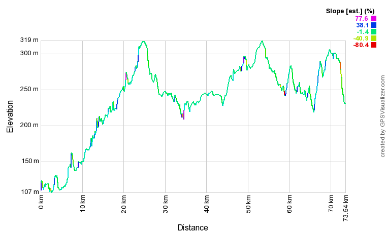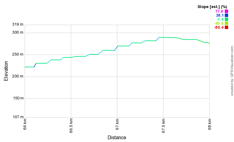 # Die schaal met kleurtjes voor de stijgingen is onzinnig grof. De minst steile helling klimmend is "38,1%".