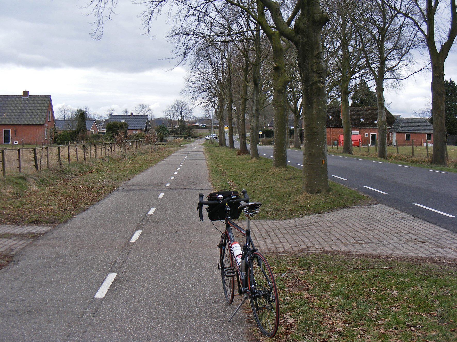 Inderdaad, Noord-Drenthe. Ik heb geparkeerd in een grote brinkdorp met veel imposante gebouwen en inrichtingen. En daarna op m'n fiets afgezakt.