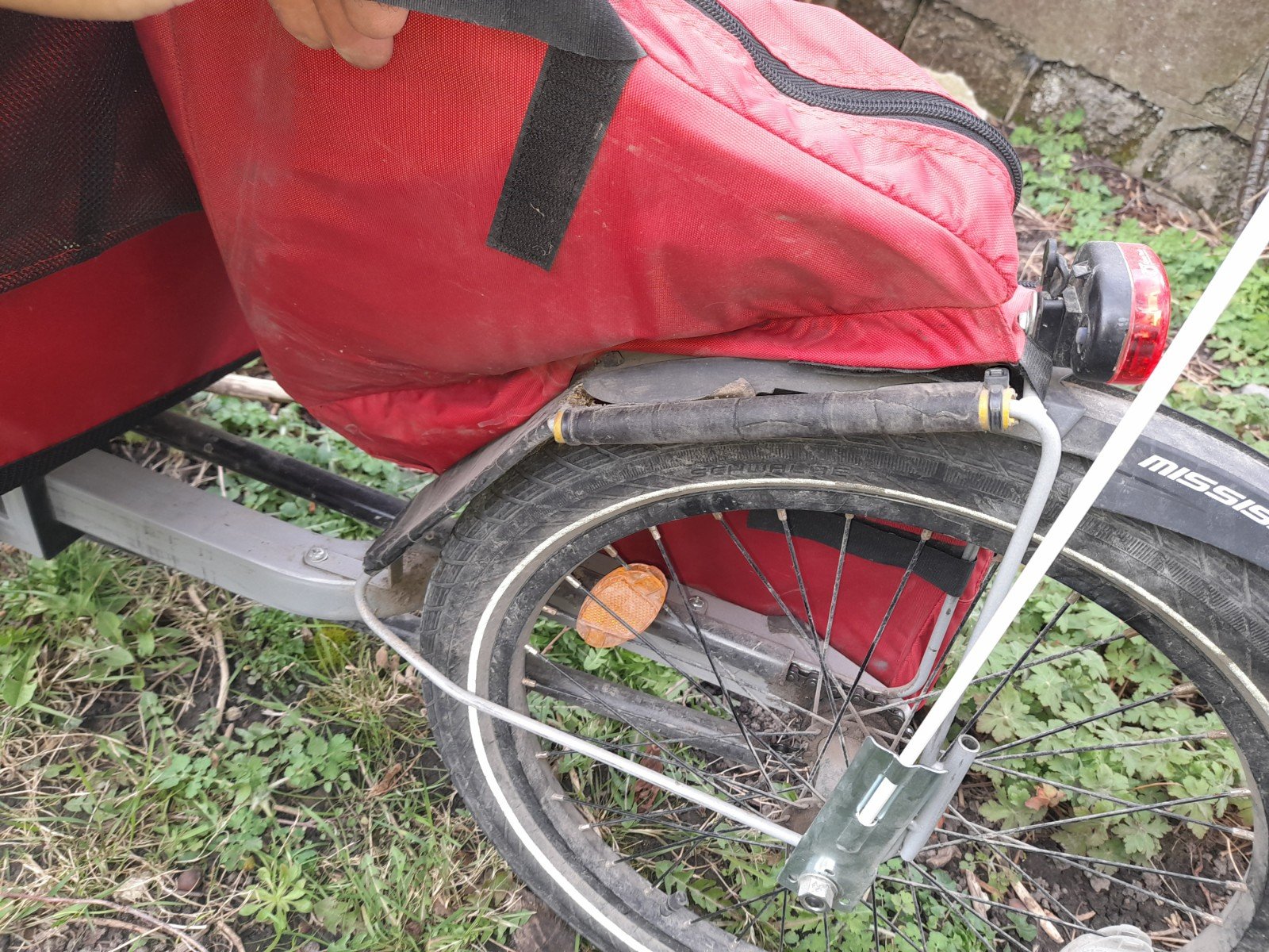 - Standaard bagagedrager lichtjes aangepast zodat er twee ortlieb-tassen op kunnen