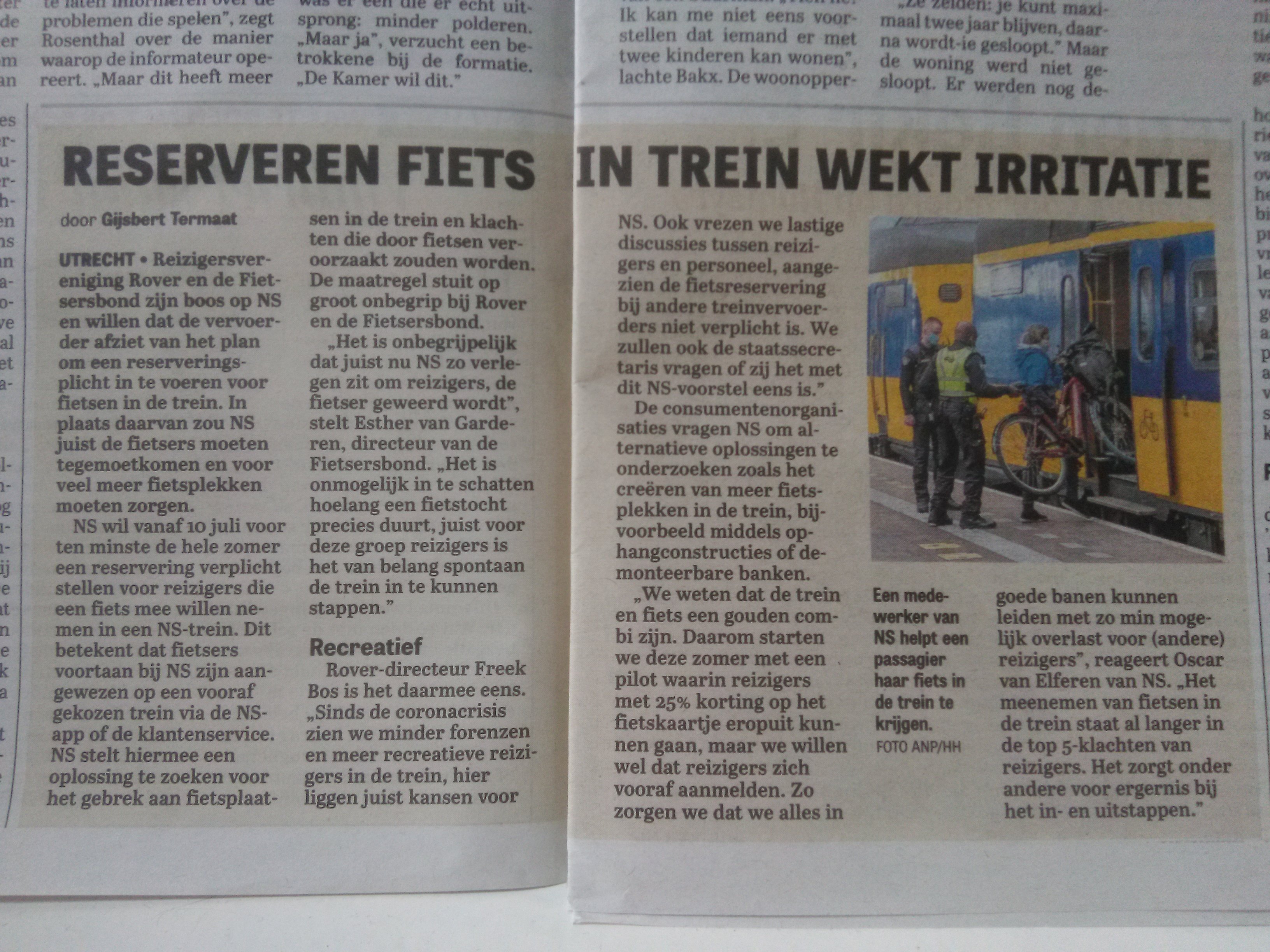 De NS wil het verplicht reserveren pas in juli laten ingaan.Martin E. van Doornik schreef: ↑vr 28 mei, 2021 11:59En ik wil graag volgende week in Zuid-Holland fietsen.... zal wel zien.