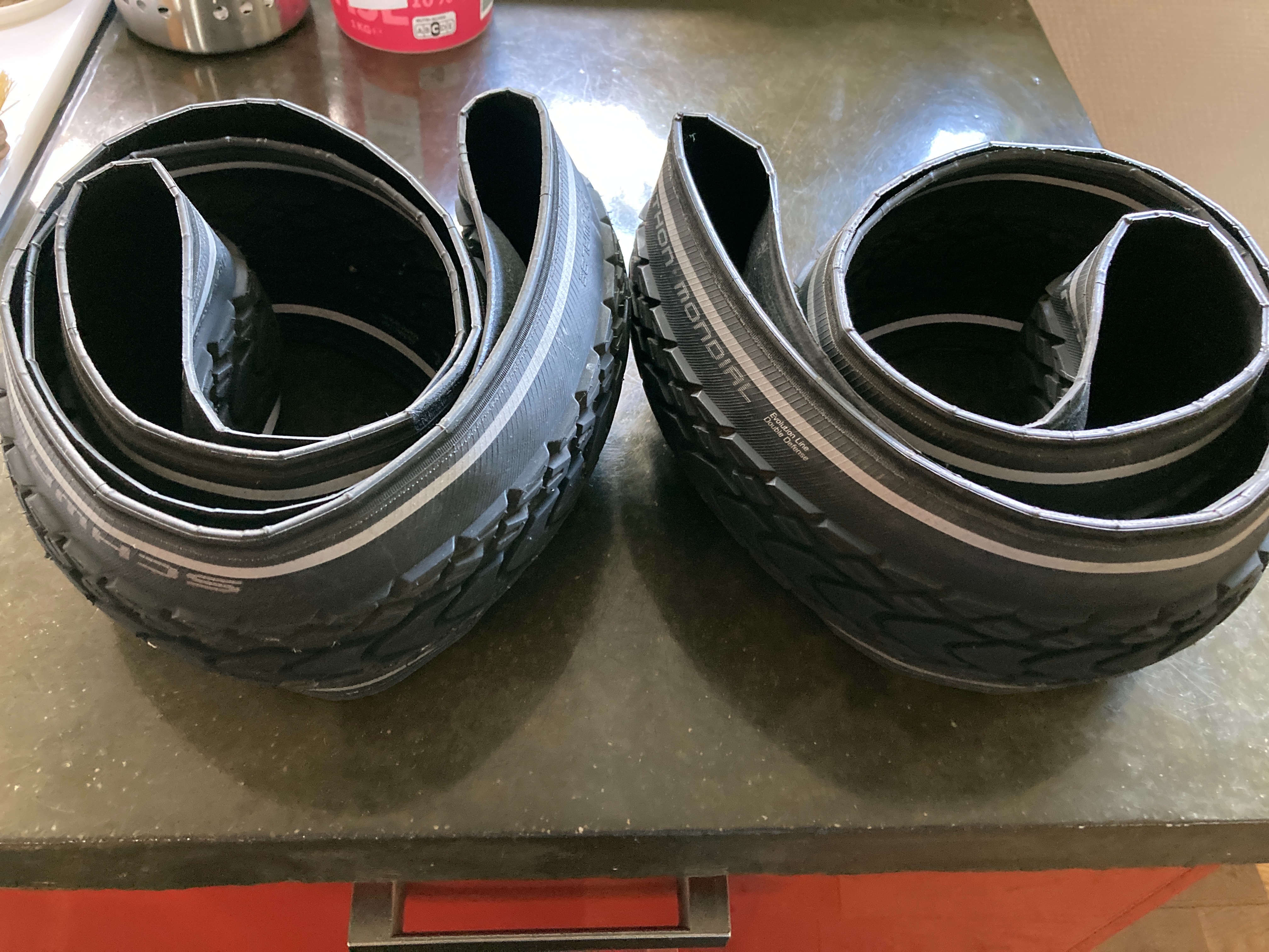 Wegens overcompleet te koop aangeboden, 2x Schwalbe Marathon Mondial 50-622. Heb er ongeveer 300 km mee gefietst, voornamelijk op asfalt. Ze mogen weg voor € 35,- inclusief verzendkosten.