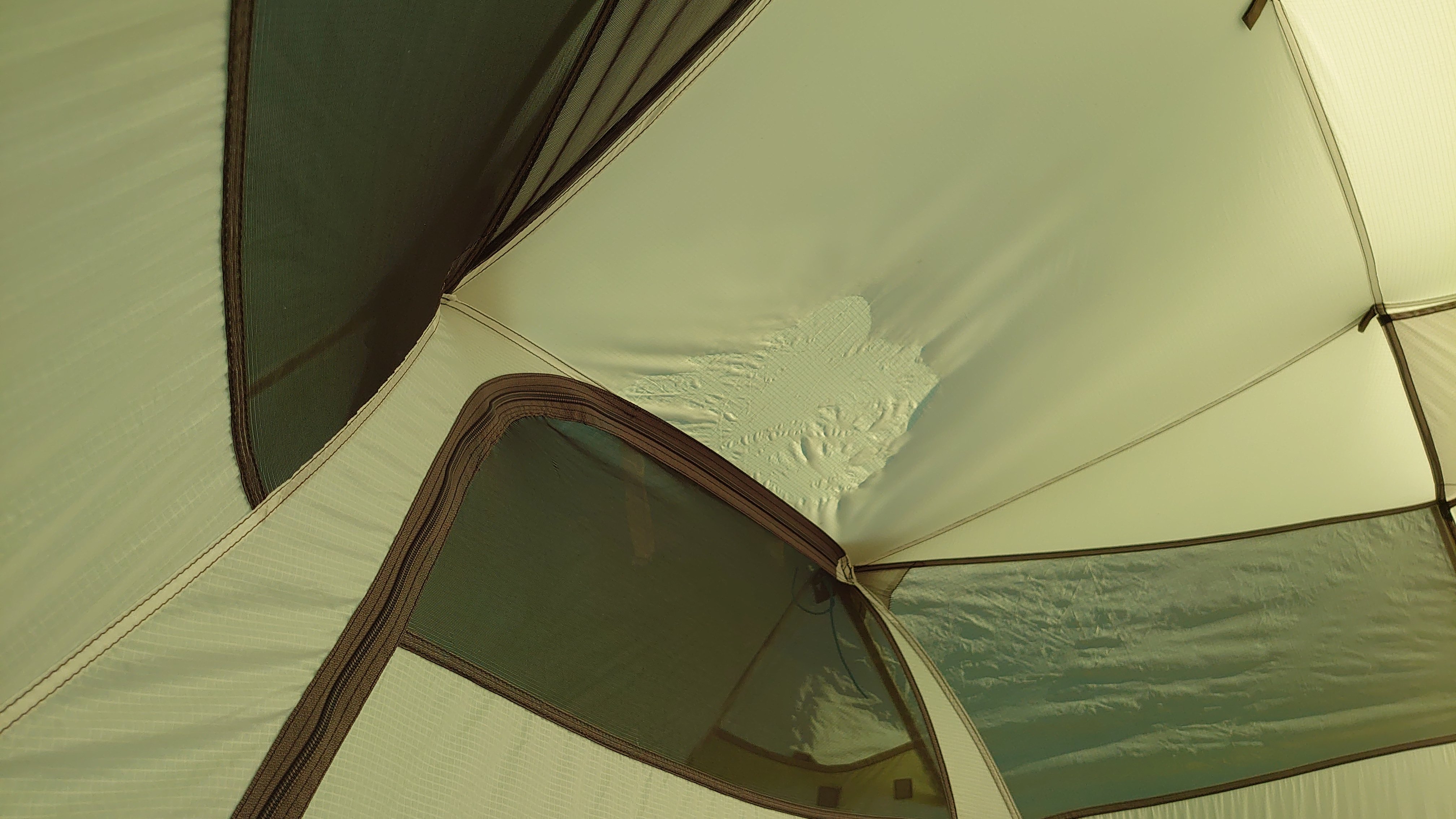 Ik hang de binnentent tegenwoordig wat lager op aan de stangen zodat binnen en buiten elkaar niet meer raken.