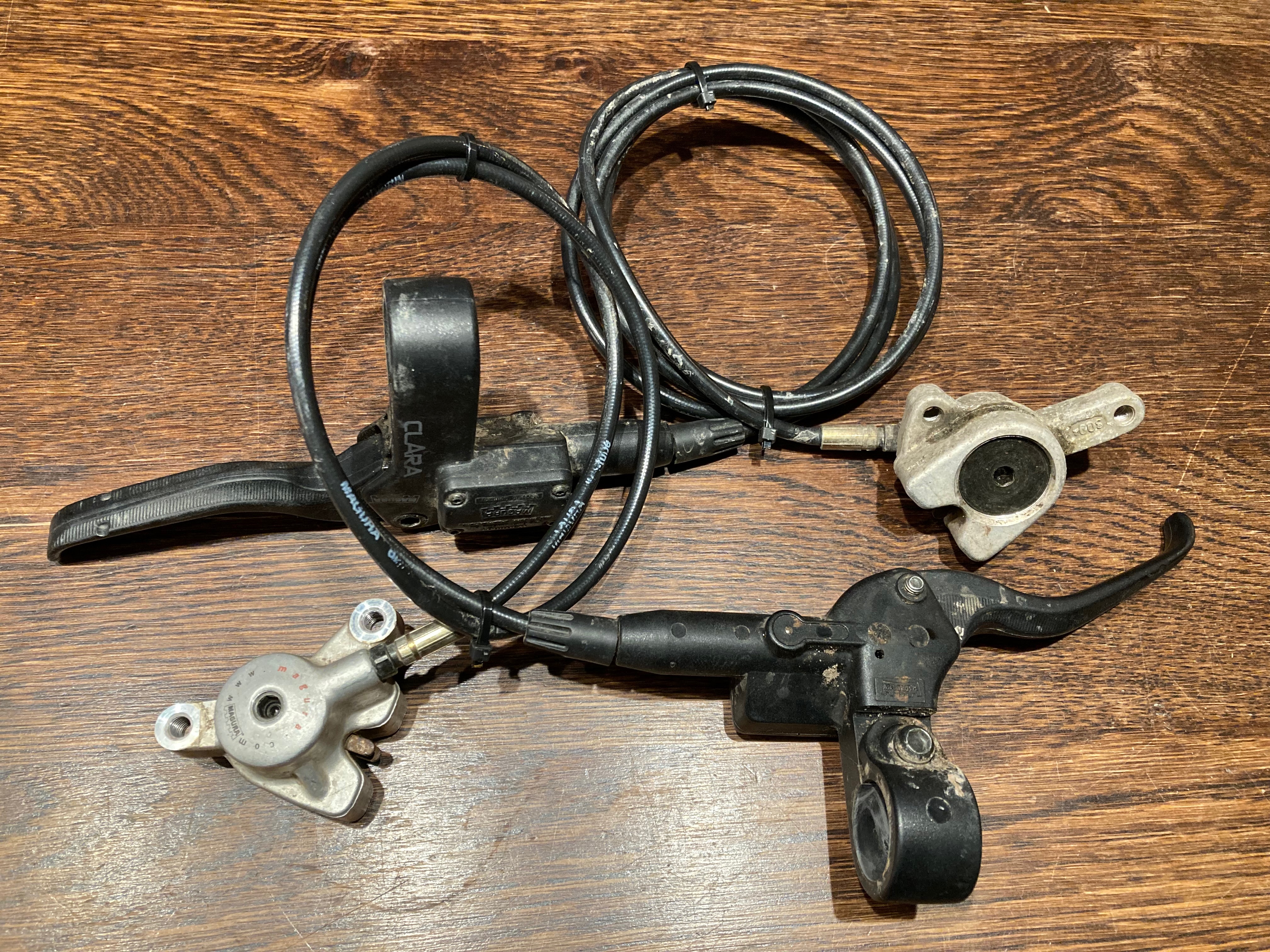 Een voor- en achterrem helemaal droog en functioneel van m’n mtb afgekomen. IS mount. Fiets zitten 160mm schijven op maar die krijg je er niet bij.