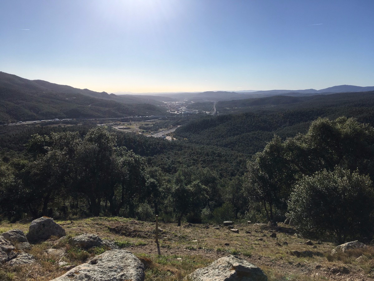 De Spaanse fietsroute blijkt een MTB route te zijn met waarschuwingen ivm de steilte. Maar de weg is vele malen beter dan de voorbije dagen, fijne gravel met hier en daar inderdaad heel steile stukken waarbij ik moet afstappen. Maar het is over het algemeen berijdbaar, ik kan zelfs rond mij kijken zonder schrik te hebben op mijn gezicht te gaan. En wat ik zie is mooi.