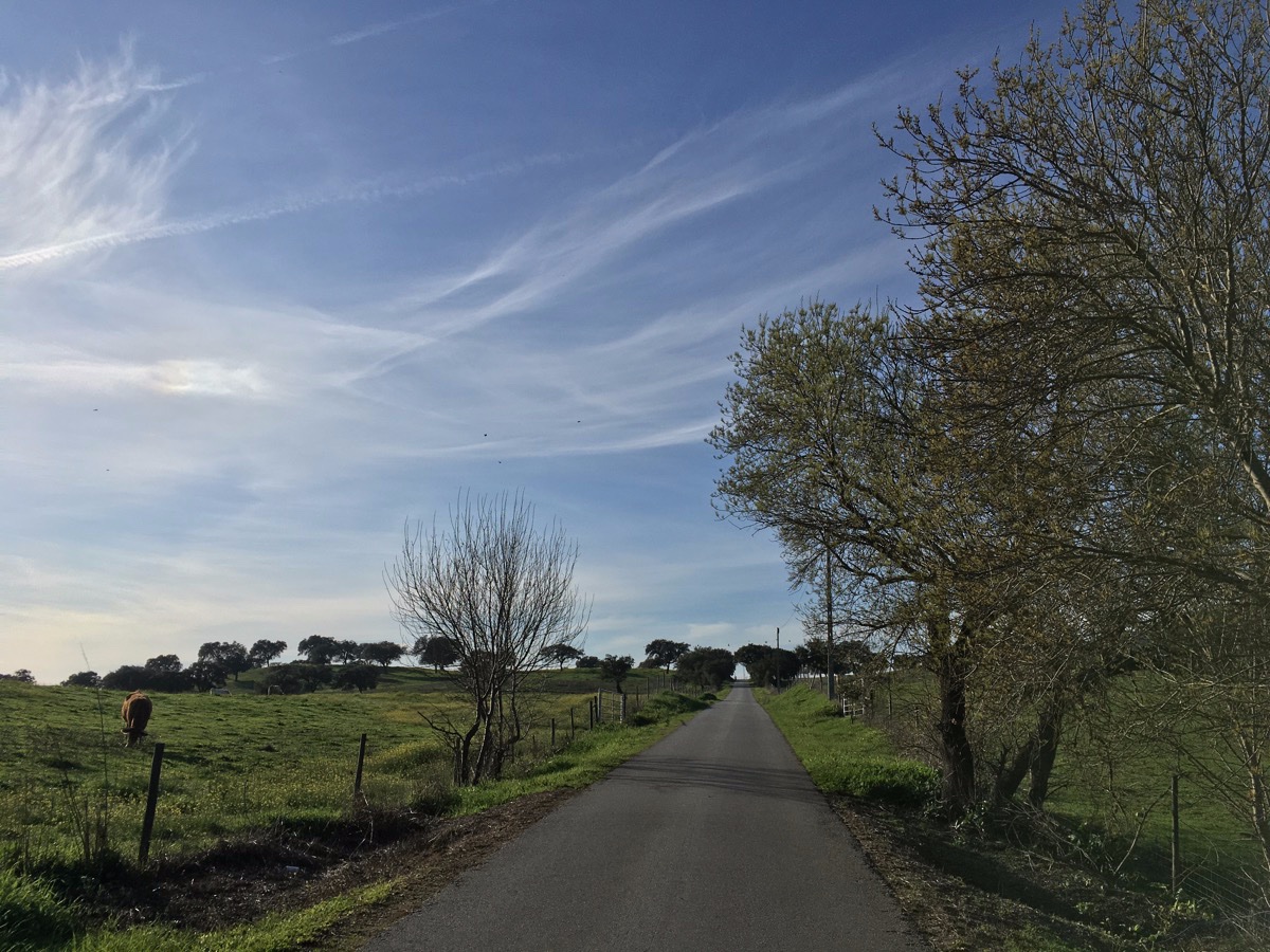 Na Évora ben ik om één of andere reden dolgelukkig om in Portugal rond te fietsen. Ik kan het niet uitleggen, objectief gezien is het landschap veel minder spectaculair dan Spanje maar er is iets in het licht en de lucht dat mij gewoon goed doet voelen. Dat, en die laissez-faire aanpak van de Portugezen spreekt mij meer aan dan het strikte van de Spanjaarden die zelfs met mondmasker autorijden en fietsen.