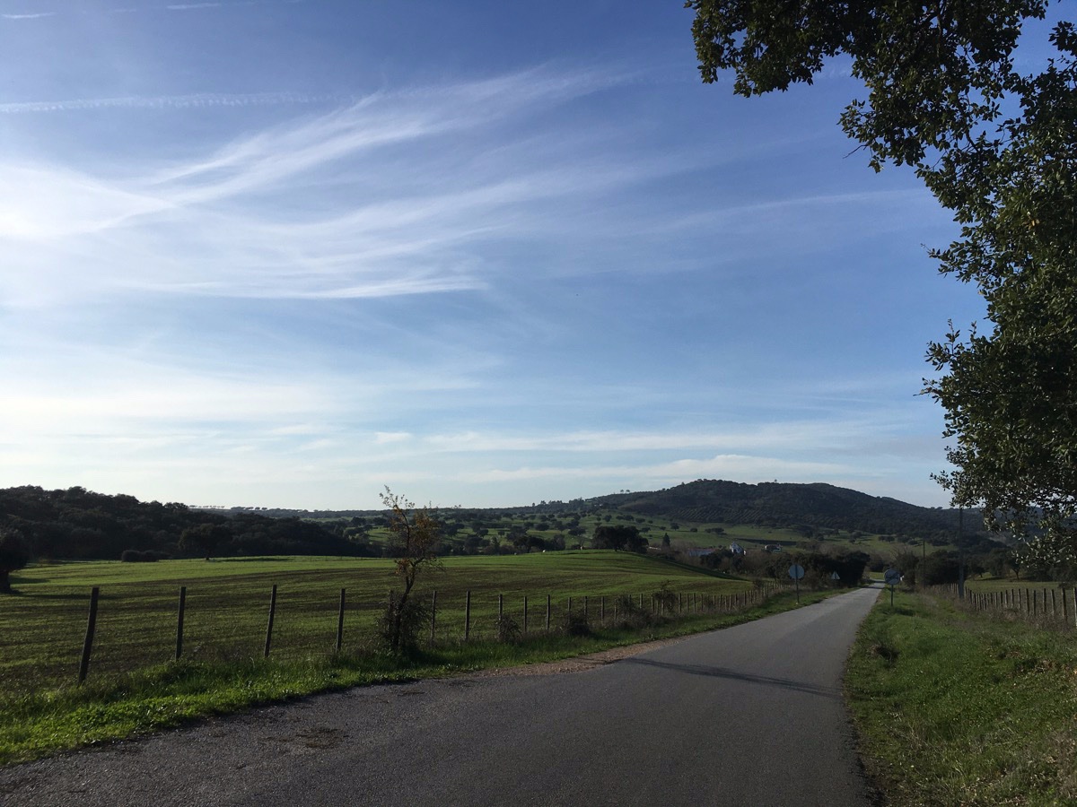 Na Évora ben ik om één of andere reden dolgelukkig om in Portugal rond te fietsen. Ik kan het niet uitleggen, objectief gezien is het landschap veel minder spectaculair dan Spanje maar er is iets in het licht en de lucht dat mij gewoon goed doet voelen. Dat, en die laissez-faire aanpak van de Portugezen spreekt mij meer aan dan het strikte van de Spanjaarden die zelfs met mondmasker autorijden en fietsen.