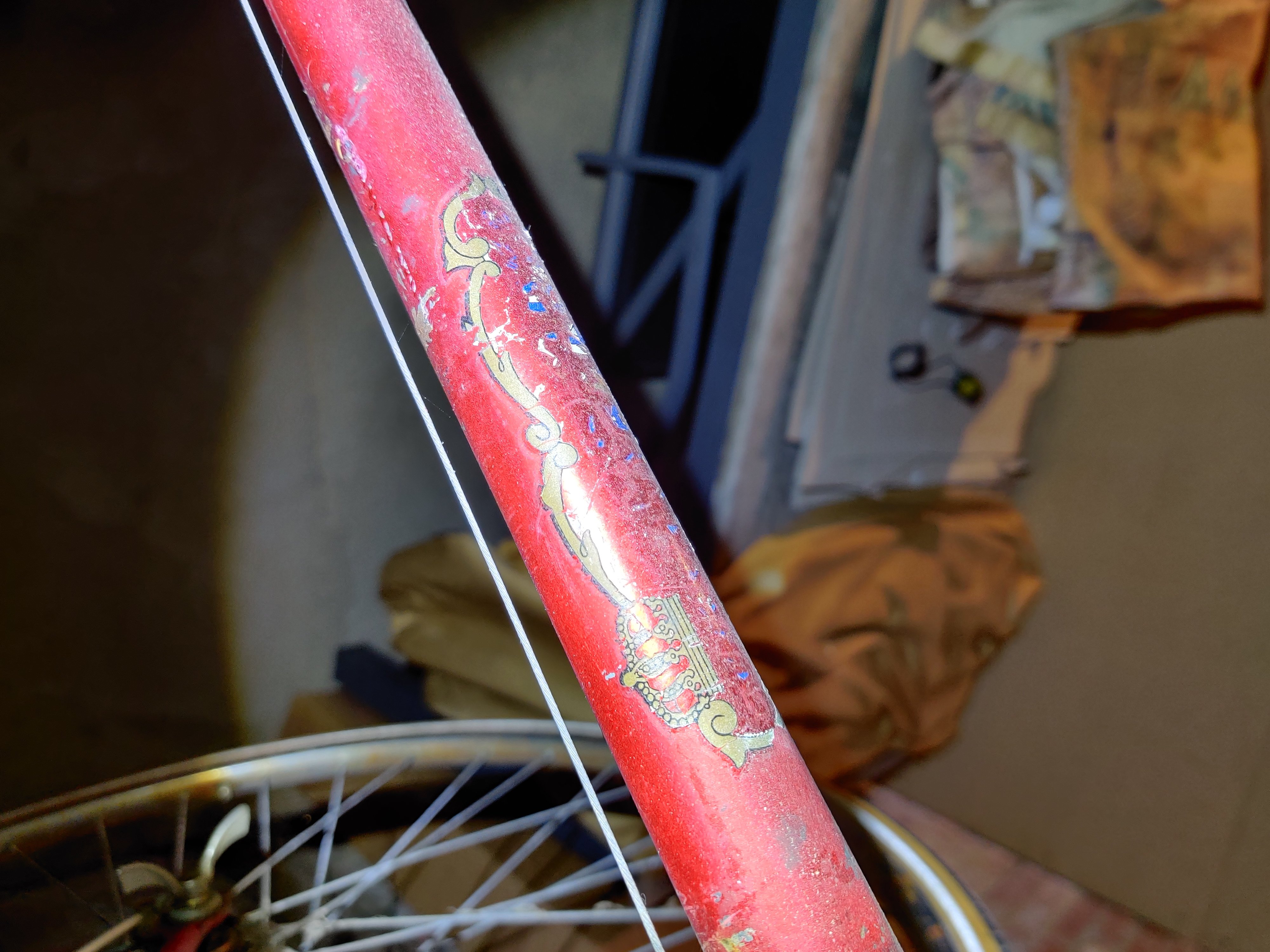 Wat me intrigeert is het portret bovenaan op de zitbuis. Heb je daar een foto van? Ben wel benieuwd wie dat is. :)