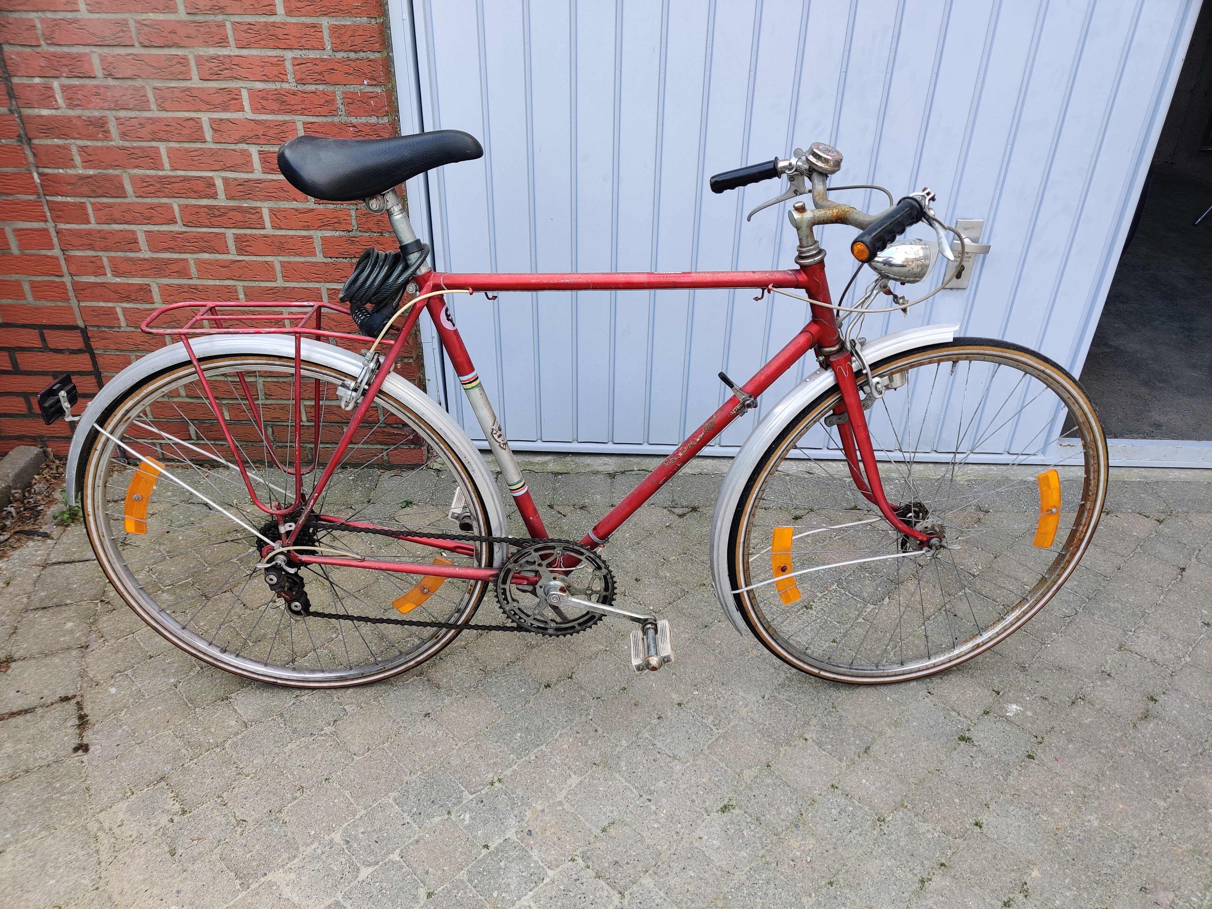 Dat lijkt me een Flandria. De bagagedrager is een goede hint in die richting.