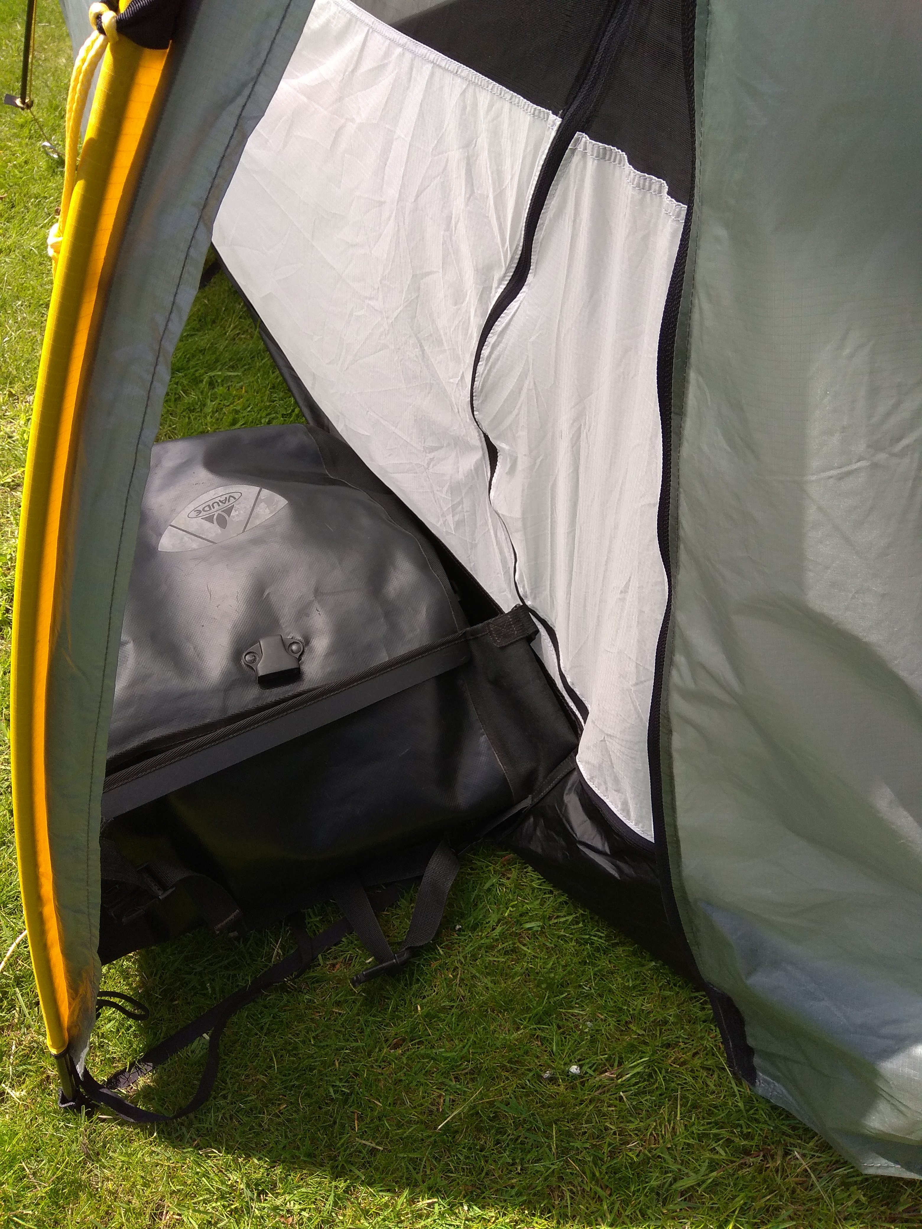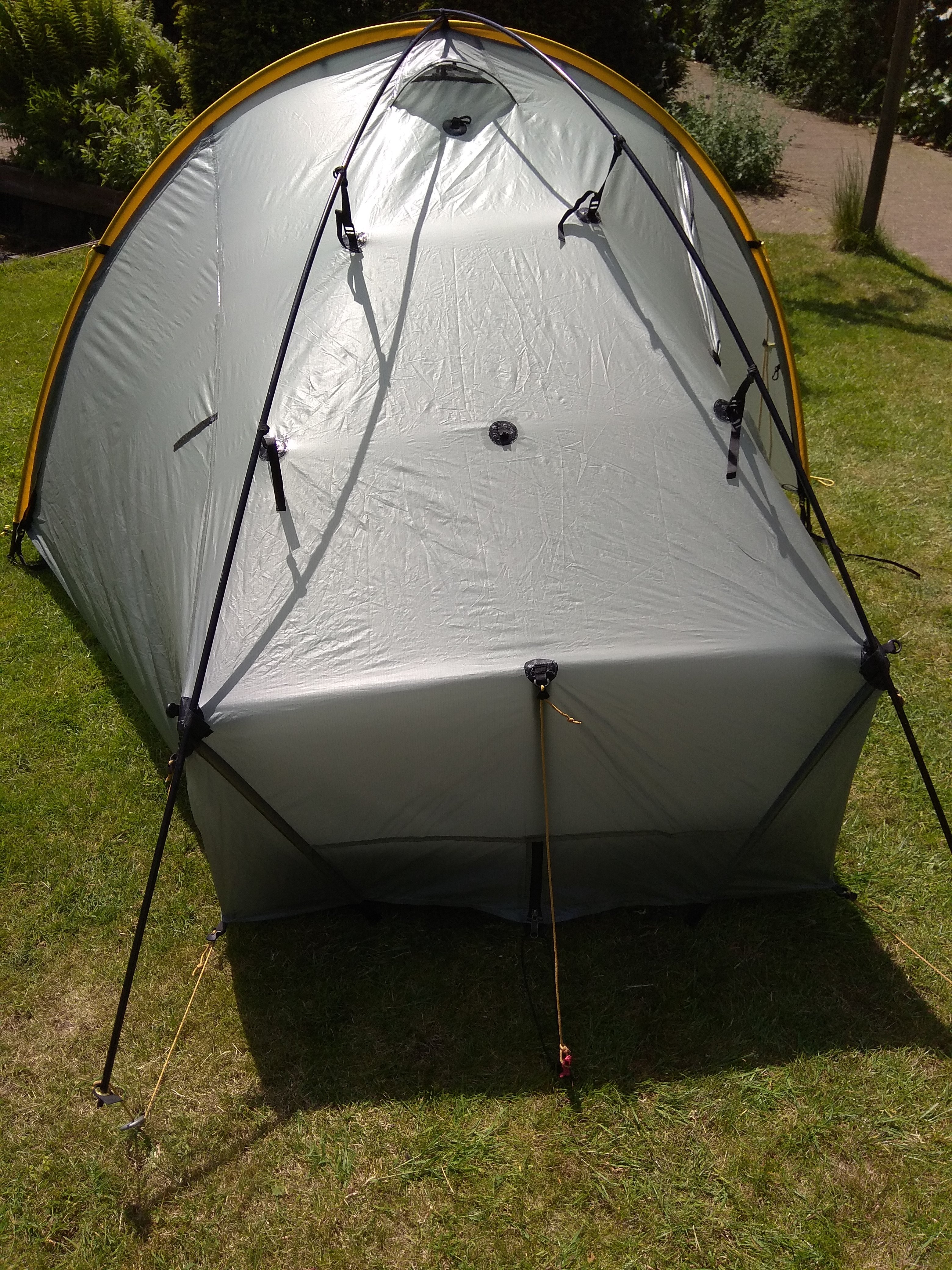 De twee extra stokken en een solid binnentent zijn niet standaard. Deze tent weegt 1800 gram.