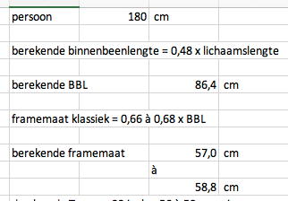 misschien helpt je dit in je zoektocht: ik heb even ouderwets gerekend richting een indicatie van een framemaat: