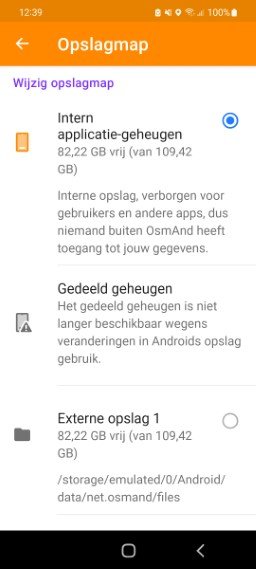 Hetzelfde gebeurt als ik via Android naar Osmand (APP-info) ga. Als opslag staat daar vermeld Interne opslag, maar ja.