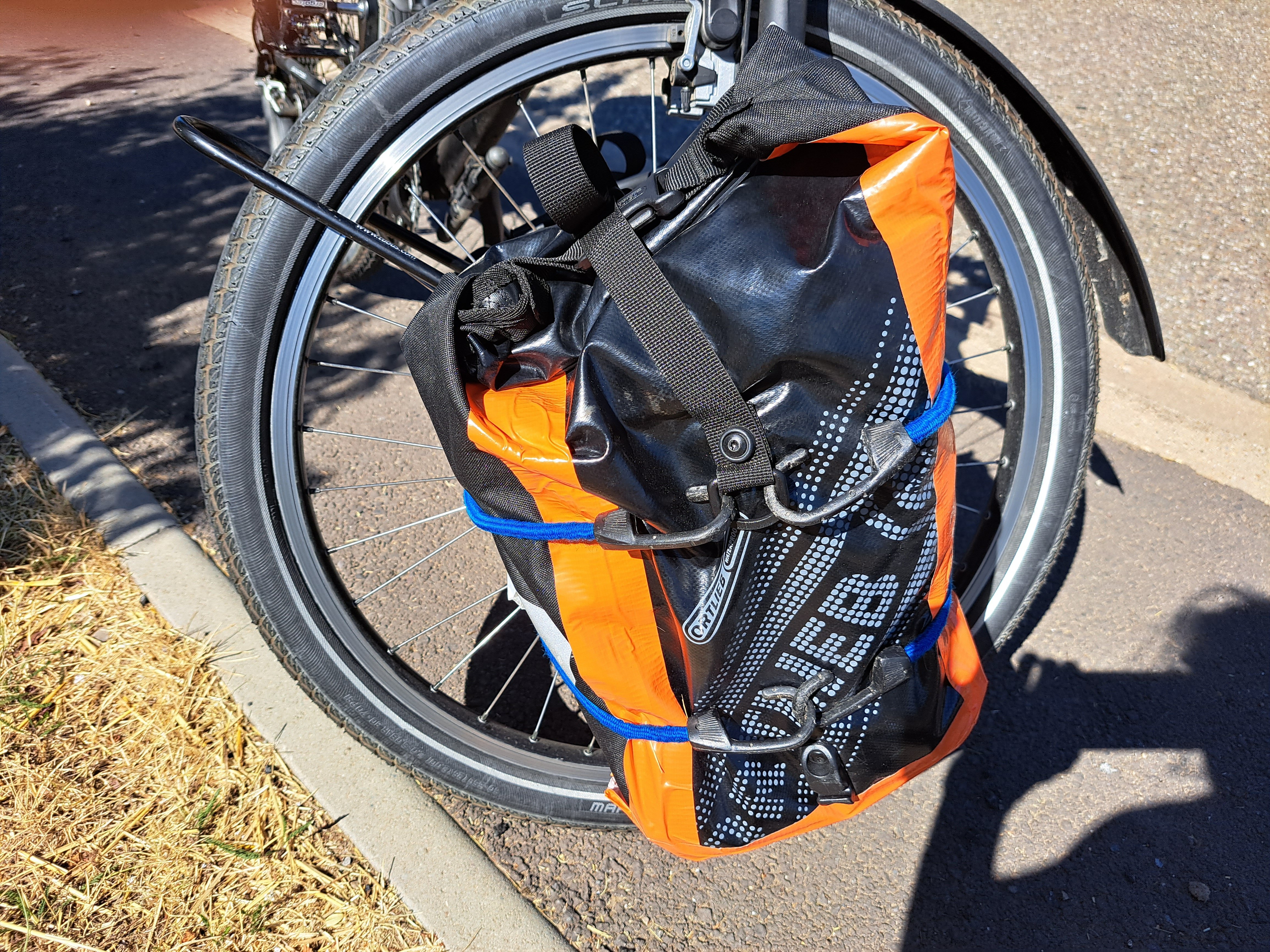 Het gaat hier wel om Ortlieb-tassen van minstens 20 jaar oud die heel veel gebruikt en misbruikt werden. Zoals op de eerste foto te zien is heeft ook de coating het (bovenaan de tas, waar er dus gerold wordt) begeven. De tassen zijn dus niet meer 100% waterdicht. (Maar ik haal met die tassen dus ook nog niet de 35 jaar waar sommigen ervaring met hebben.)