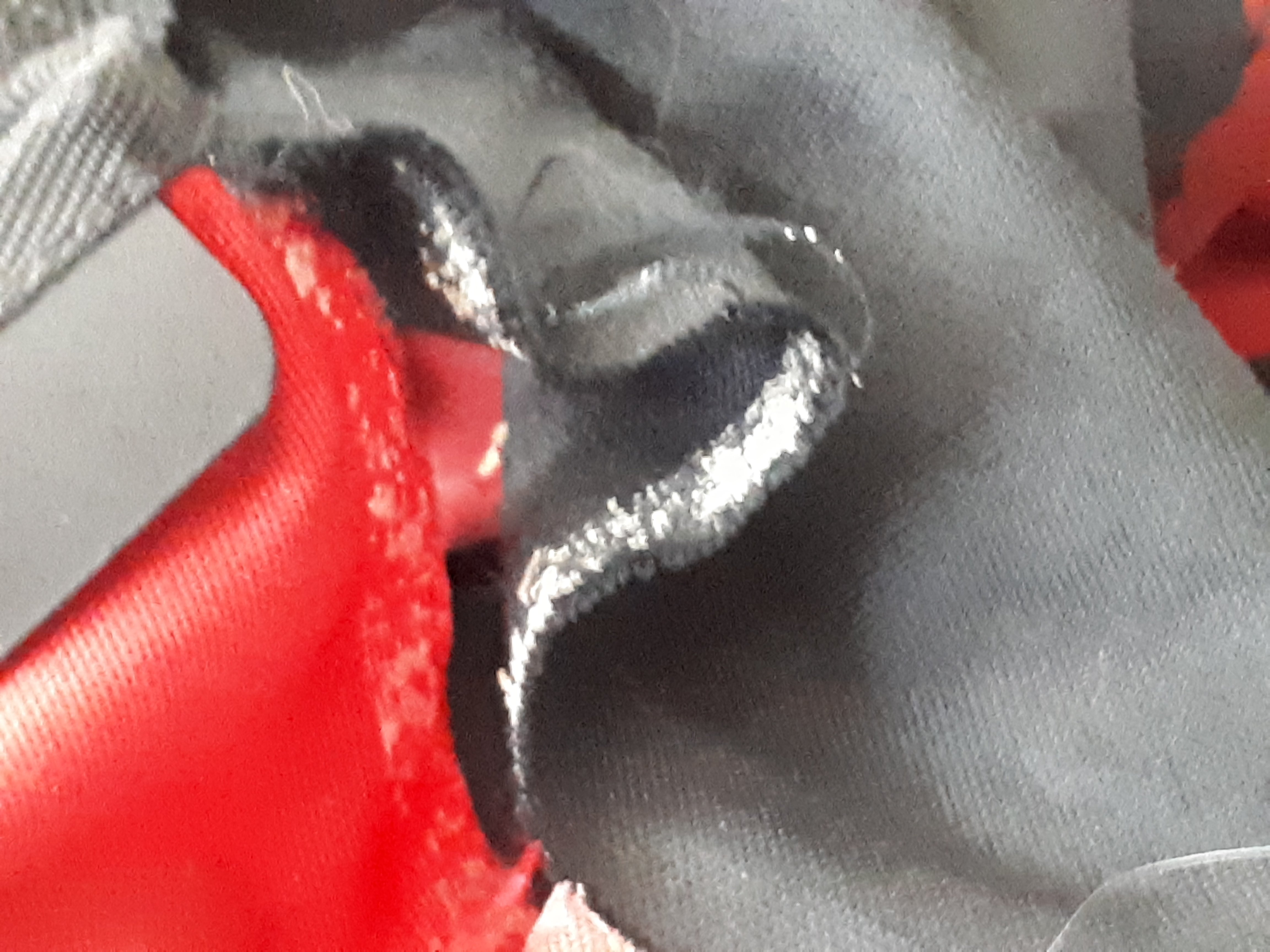 Of is het (zwarte) doek gescheurd op de vouw vlak naast de las.