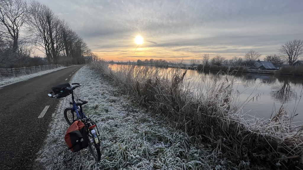 Niet vandaag, maar wel op 14 december, 13 jaar geleden bij min 6 graden fietsten we naar een paalkampeerplek van Hillegom naar Hazerswoude.
