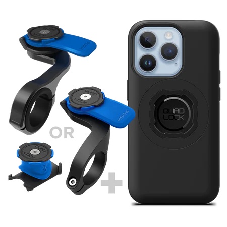Kijk eens naar Quadlock of SP Connect. Van die laatste heb ik een losse plakker gekocht en die achterop mijn waterdichte telefoonhoesje geplakt, die dan vervolgens weer op het stuur kan.