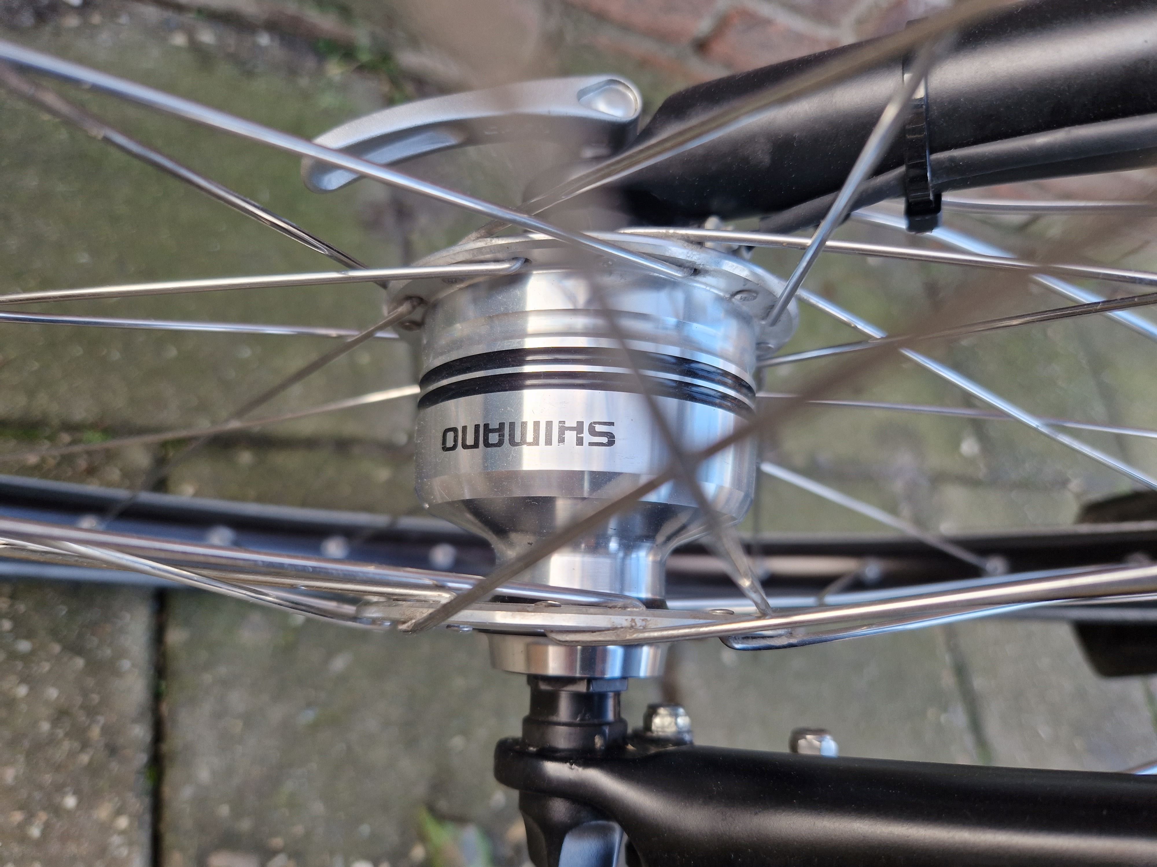 Shimano naafdynamo, voor- en achterlicht functioneert d.m.v. naafdynamo
