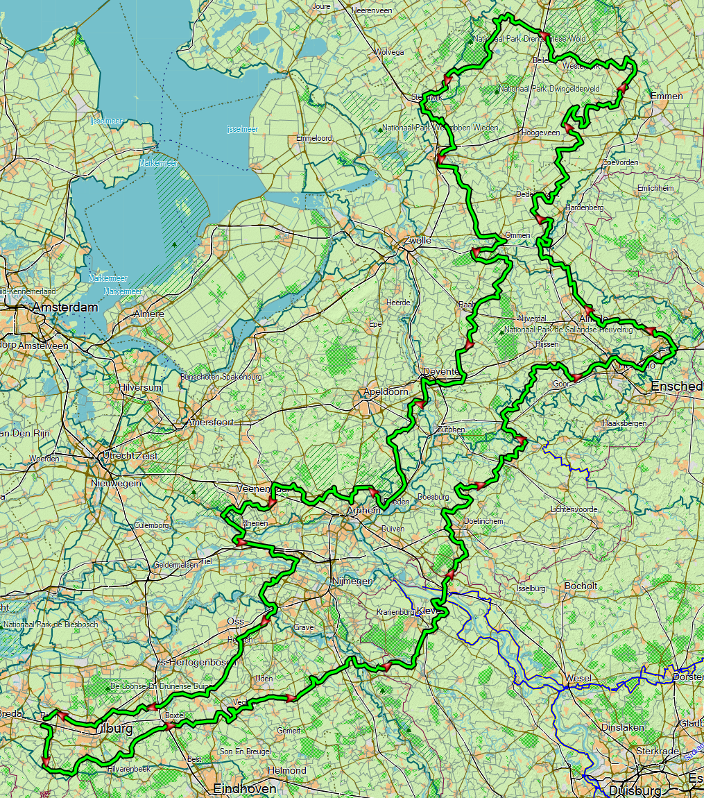 Mijn tocht ging voornamelijk over zandgronden: Brabant, Achterhoek, Twente, Drenthe, Salland, Veluwe. Uiteindelijk kwam ik uit op bijna duizend kilometer. Met een aantrekkelijke route door 12 provincies is het streven naar een ronde met een totale lengte van 2.134 km wellicht wat realistischer 😀. Maar goed, dat had je uit de eerdere posts ook al opgemaakt.