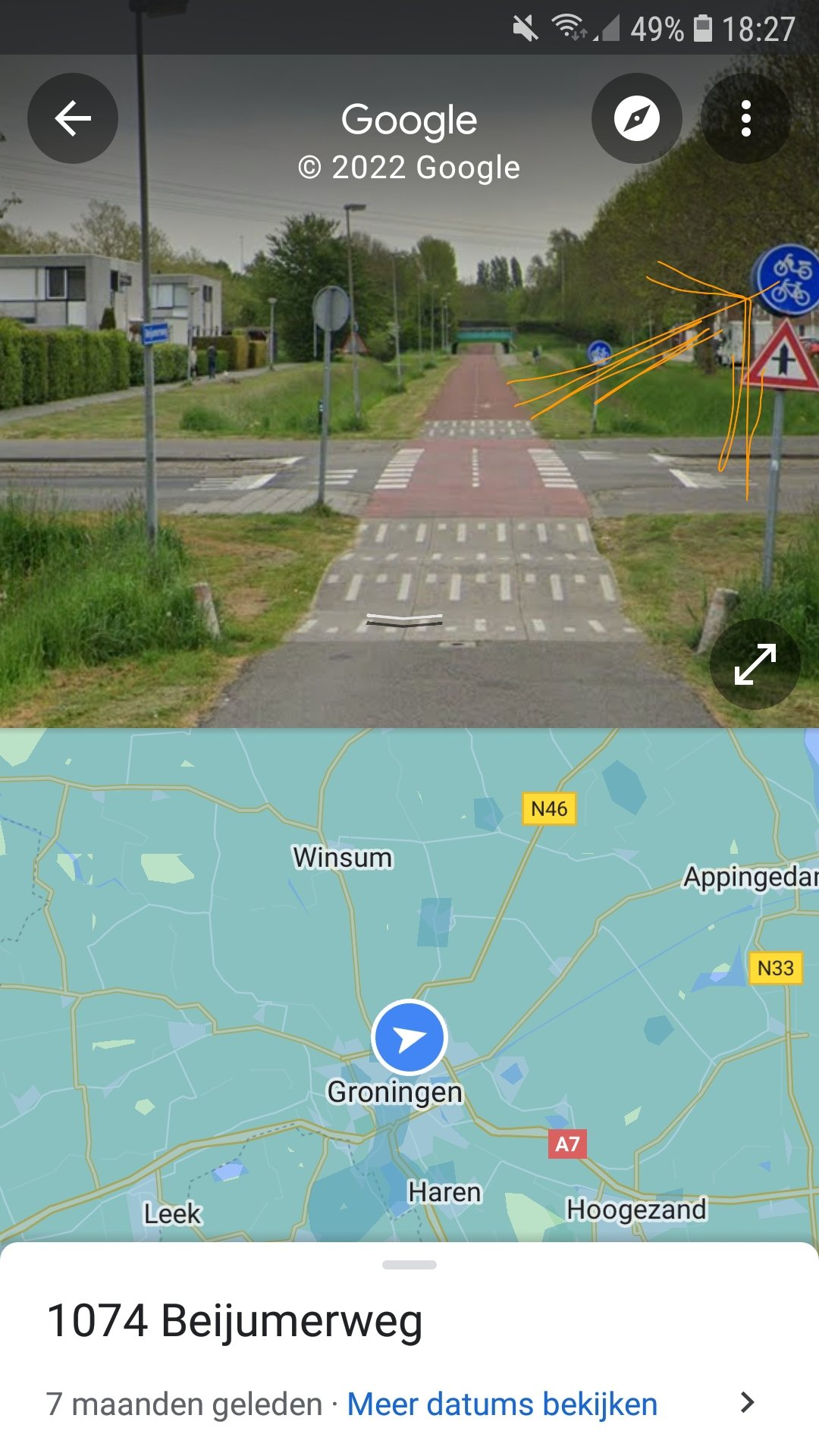 Maar het bord op de eerdere afbeelding staat zodanig waar het fietspad opnieuw begint.