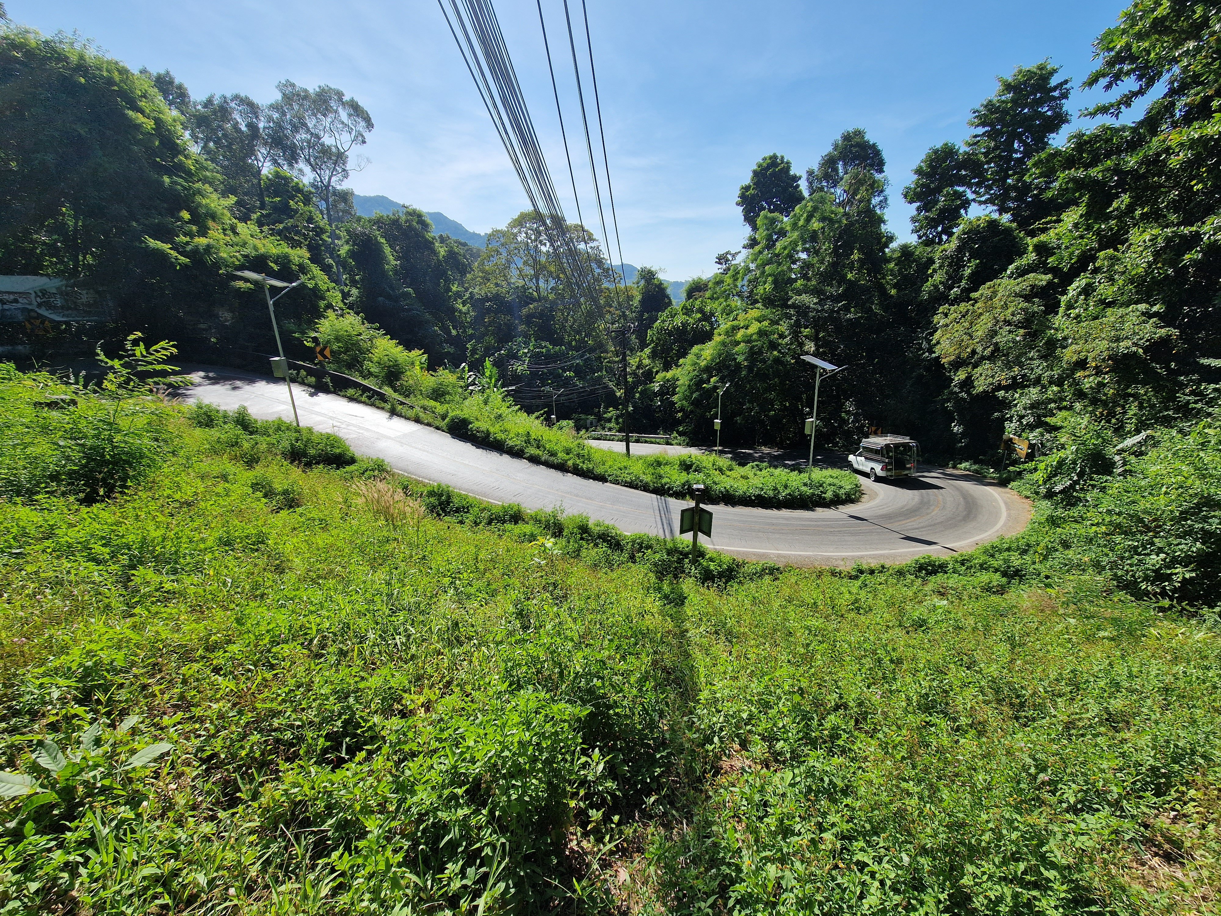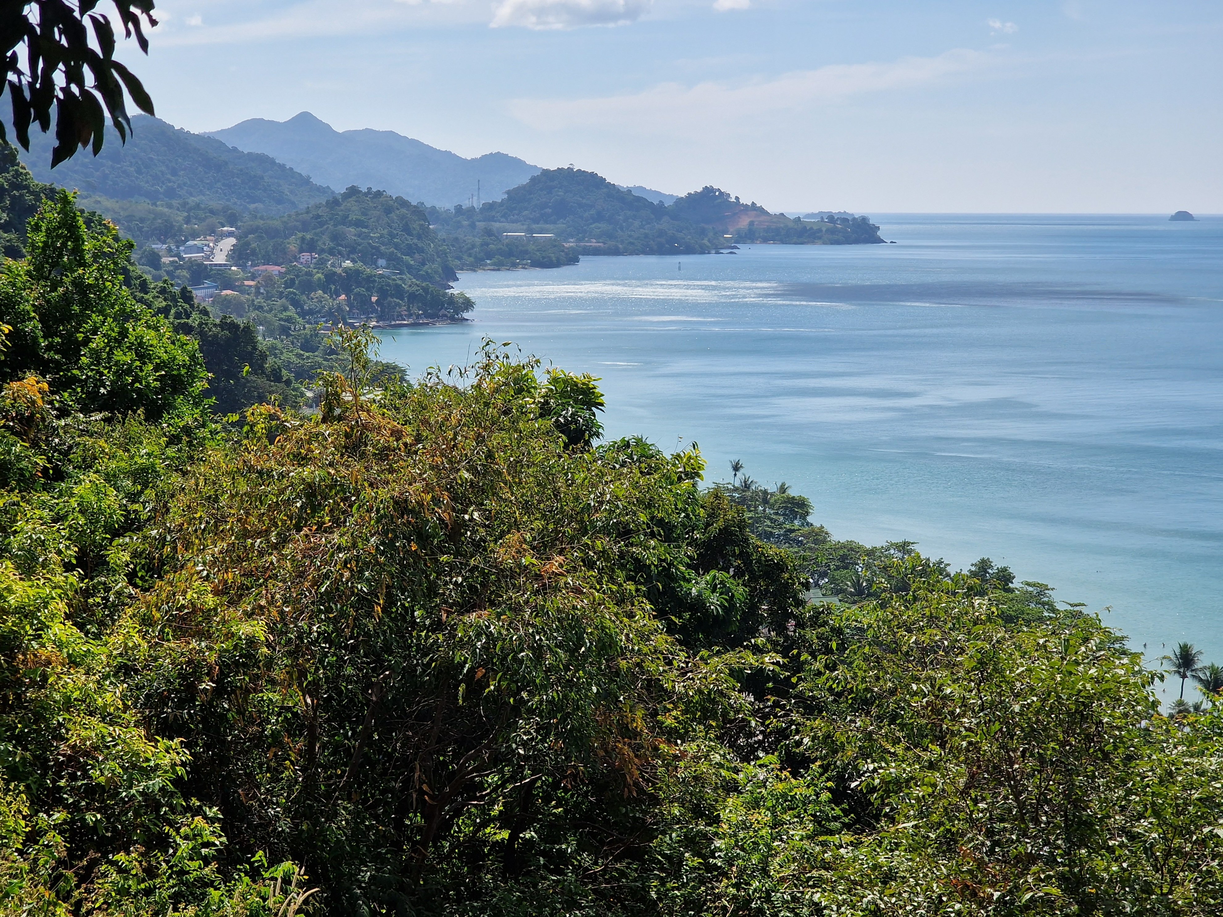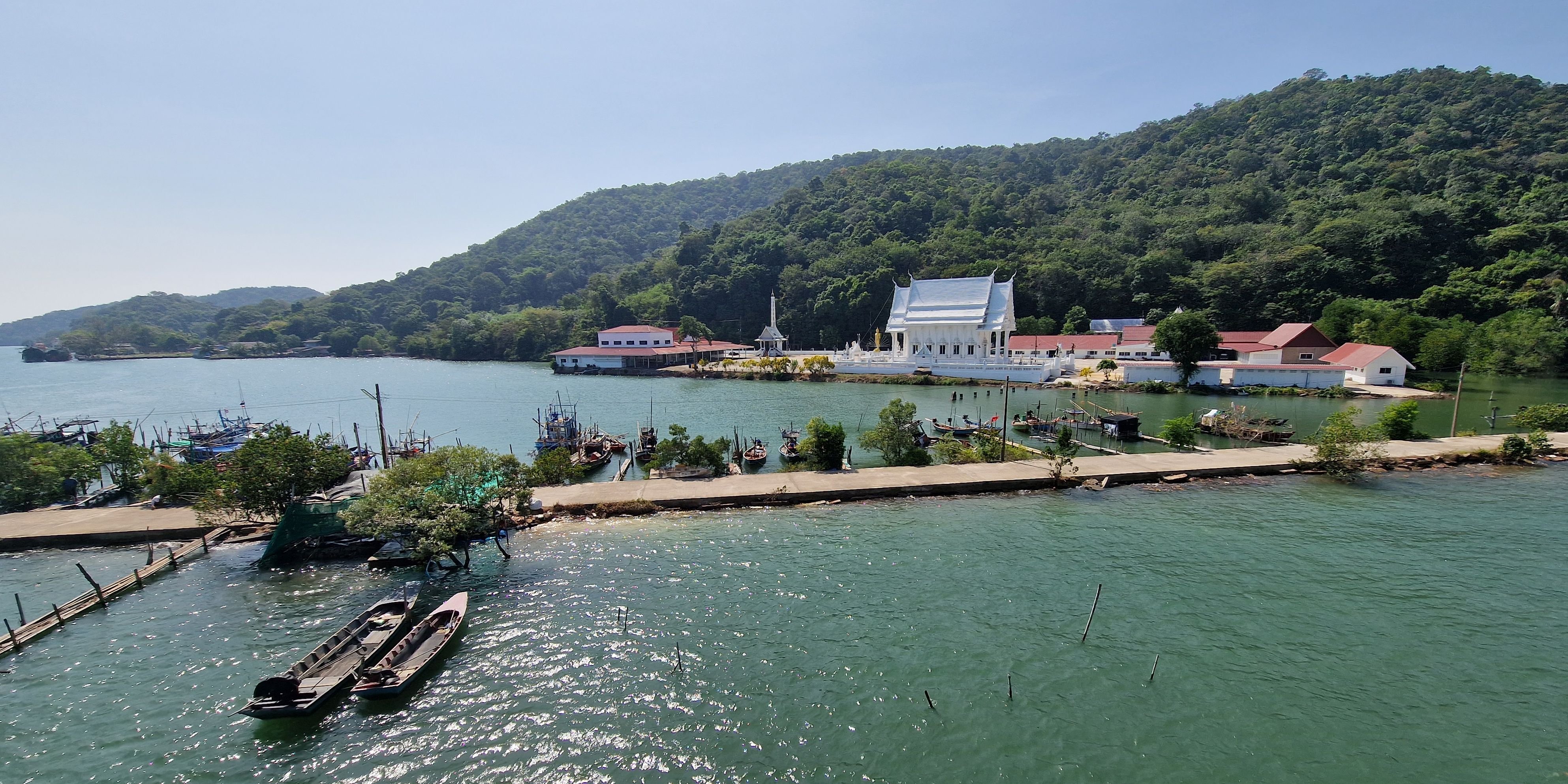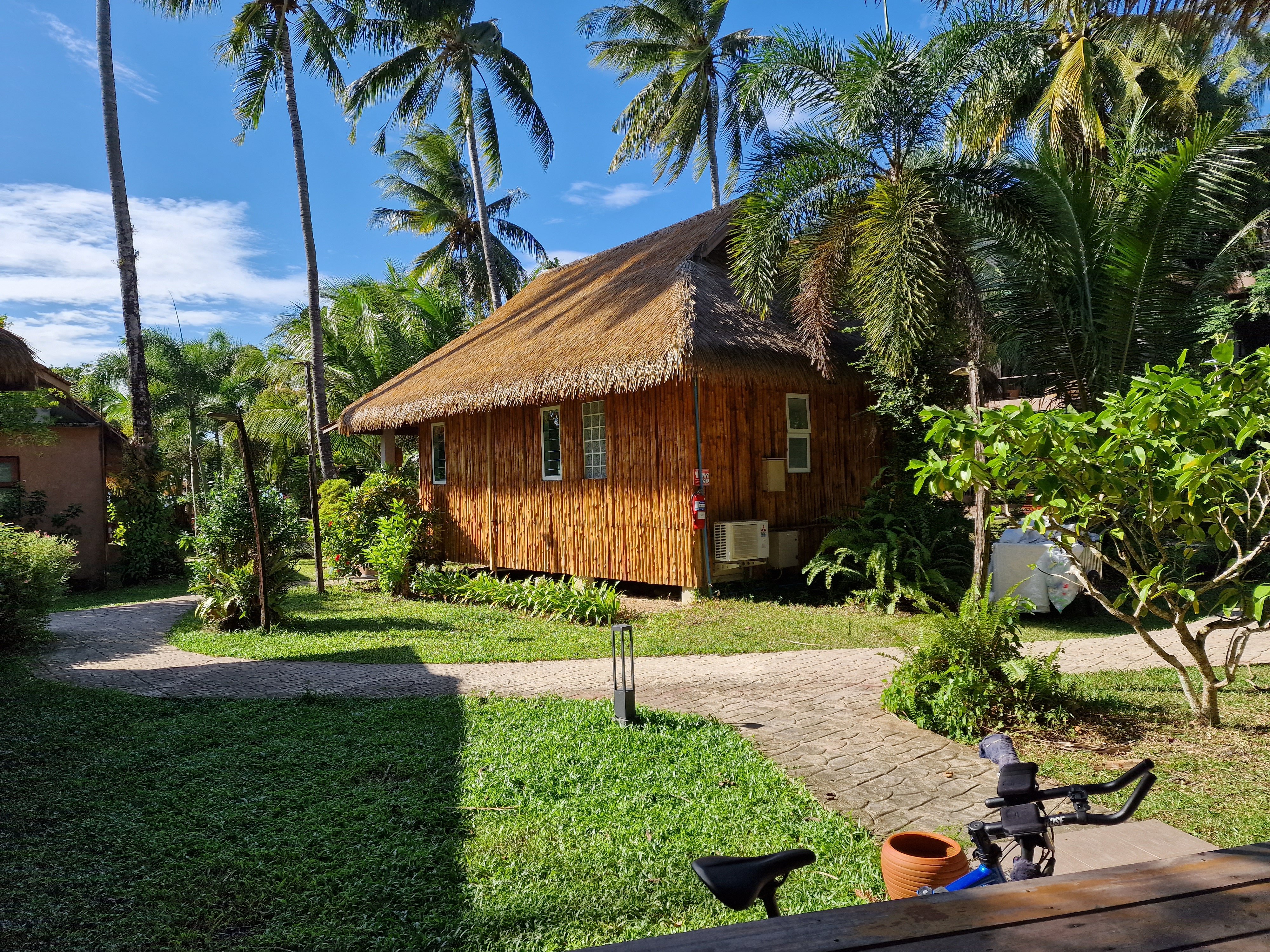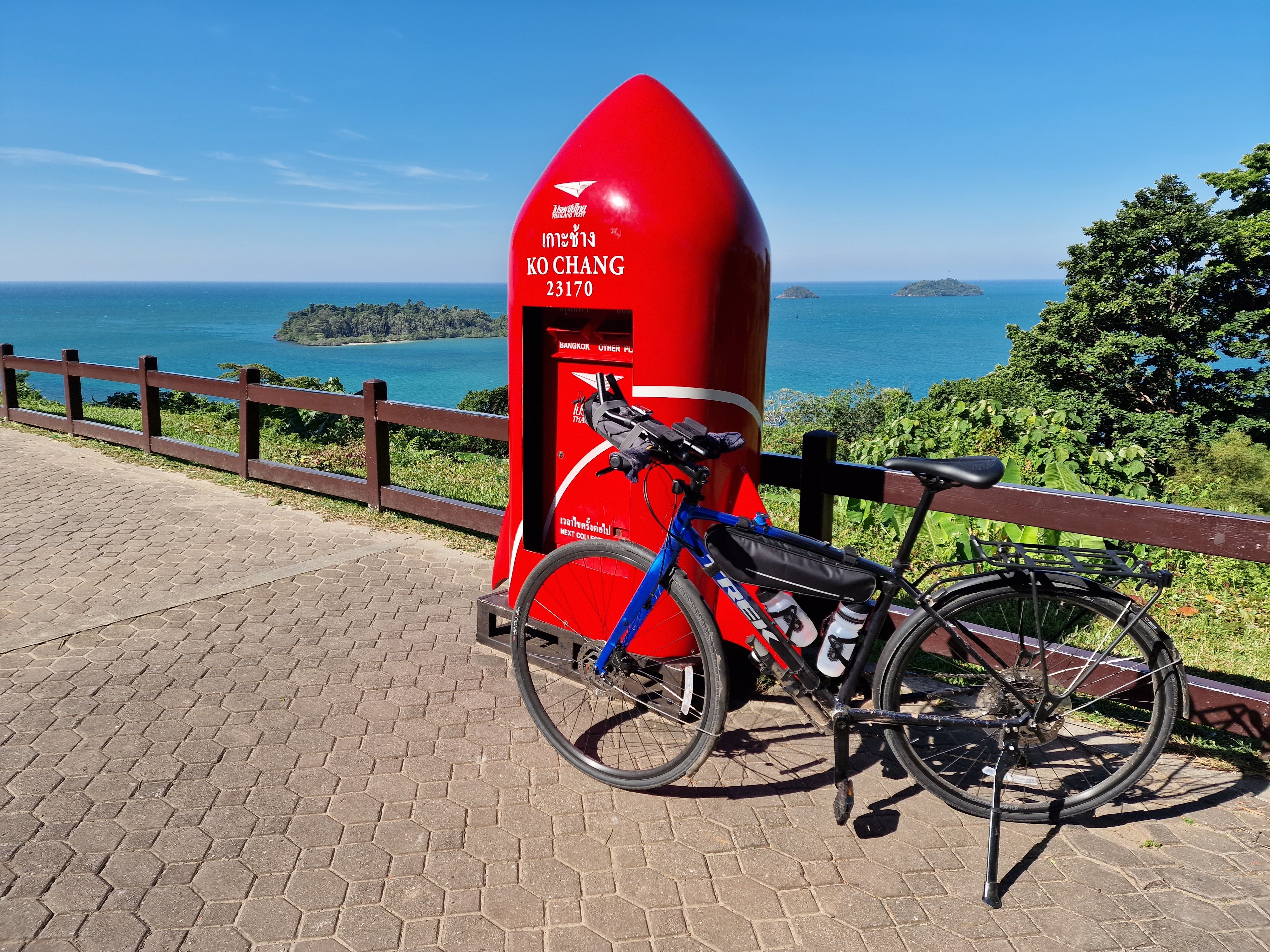 De tuin bestaat uit een aantal moeraseilanden die verbonden zijn met houten brugjes. Het landschap is niet uitzonderlijk spectaculair, maar het is heel aangenaam vertoeven in dit stukje natuur. Het is een mooi rustpunt tussen het Thaise verkeer van de vorige dagen. De brugjes zijn ook een dingetje: nog geen meter breed, geen borstwering en enkele 10-tallen meters lang. Op zich geen punt om er met beladen fiets over te rijden, maar ik behoed me opzij te kijken want ik wil het ondiepe water niet inrijden. Op het tweede brugje neemt een fotograaf huwelijksfoto’s van een mooi uitgedost jong stel. Met wat onhandig gesukkel en een verontschuldigend lachje wring ik me voorbij het koppeltje. Het laatste eiland laat ik voor wat het is want het pad ernaartoe staat onder water en ik kan niet inschatten hoe diep het precies is en hoe dik de onderliggende slijklaag is. Safety first – en het is ook nog wat vroeg om mijn 5-dagen oude fiets erdoor heen te jagen.