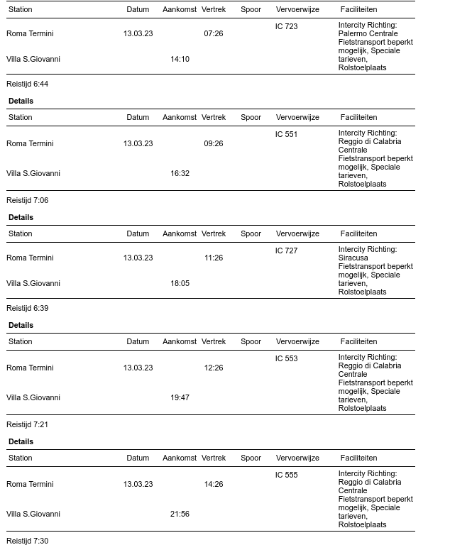 Edit: correctie van de link naar de afbeelding voor de trein die naar palermo gaat en toevoeging van treinen die naar Villa S.Giovanni gaan en aankomsttijden in Siracusa en info voor ticketverkoop.