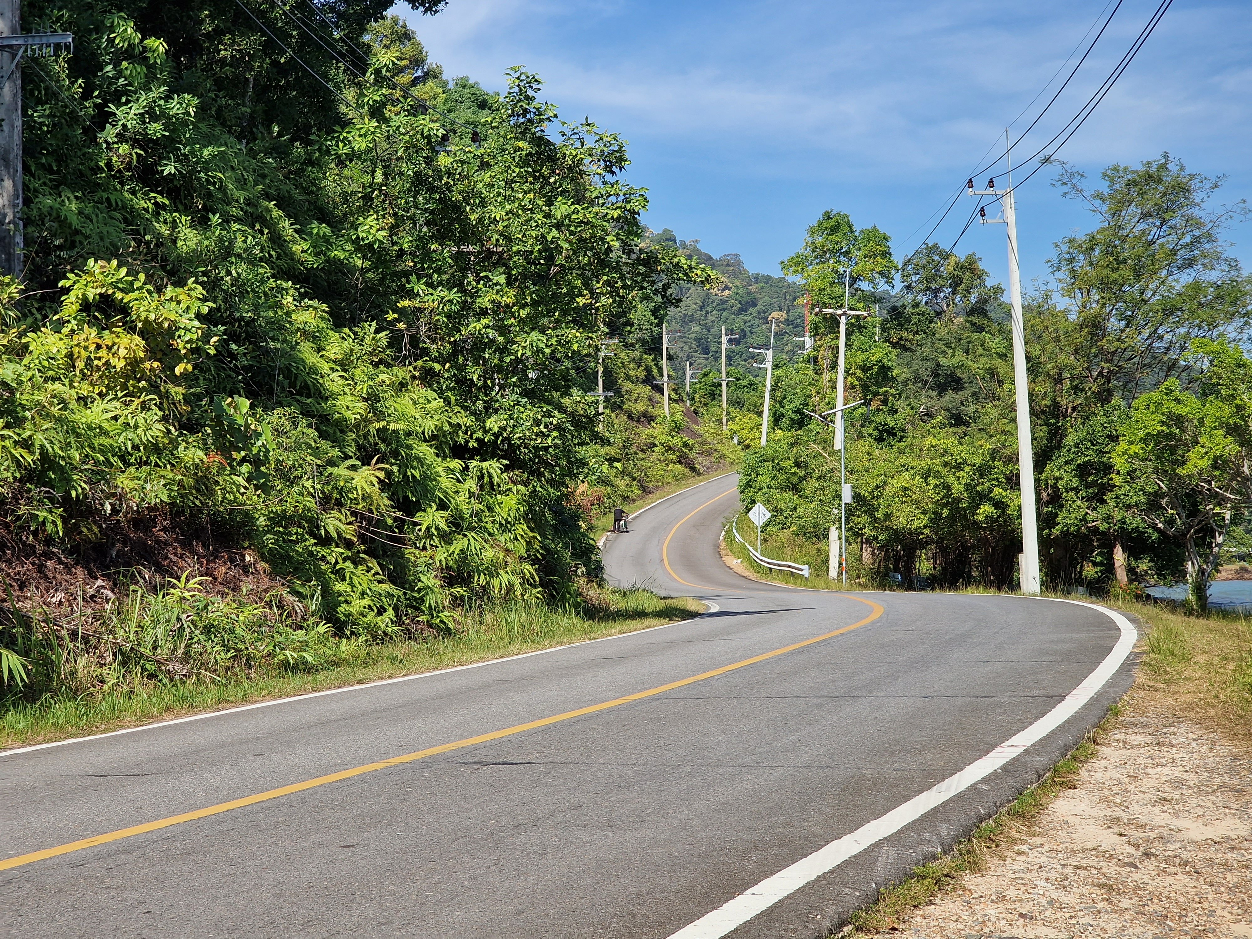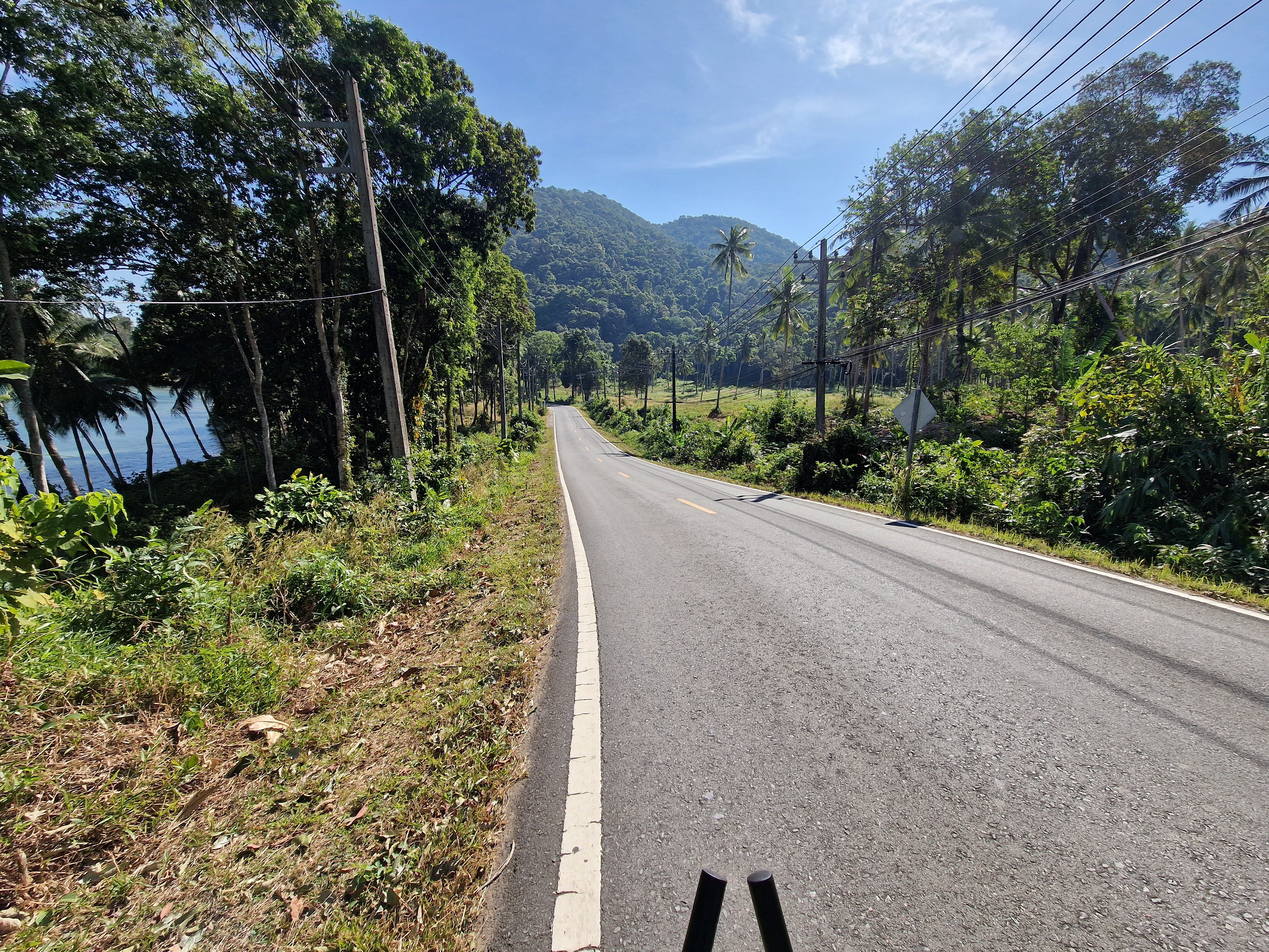 Voor de terugrit is er geen alternatief: ik moet exact dezelfde weg terugfietsen om bij mijn resort te komen. Niet dat ik dat heel erg vind: het landschap is mooi en ik zie het dan ook eens vanuit een ander perspectief. Het betekent ook dat ik voor een derde keer de kuitenbijtertjes op het noordelijk deel van het eiland moet doen. Maar dat lukt – zelfs zonder afstappen deze keer.