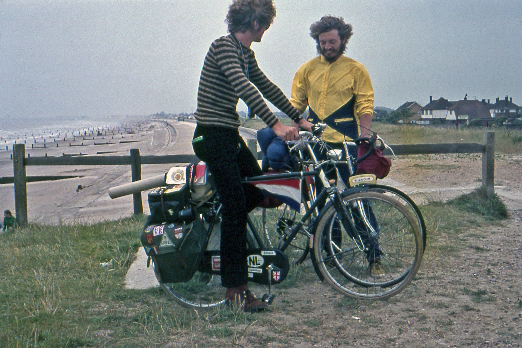 Zijn opvolger was de donkergroene "Locomotief", op mijn 15e verjaardag in 1966 van m'n moeder gekregen. Hier ergens aan de Engelse zuidkust in 1972. Dit was m'n eerste echte vakantiefiets. Heel intensief gebruikt, ook naar school in Utrecht en naar werk in Hilversum. Was na 7 jaar al "op" in 1973.
