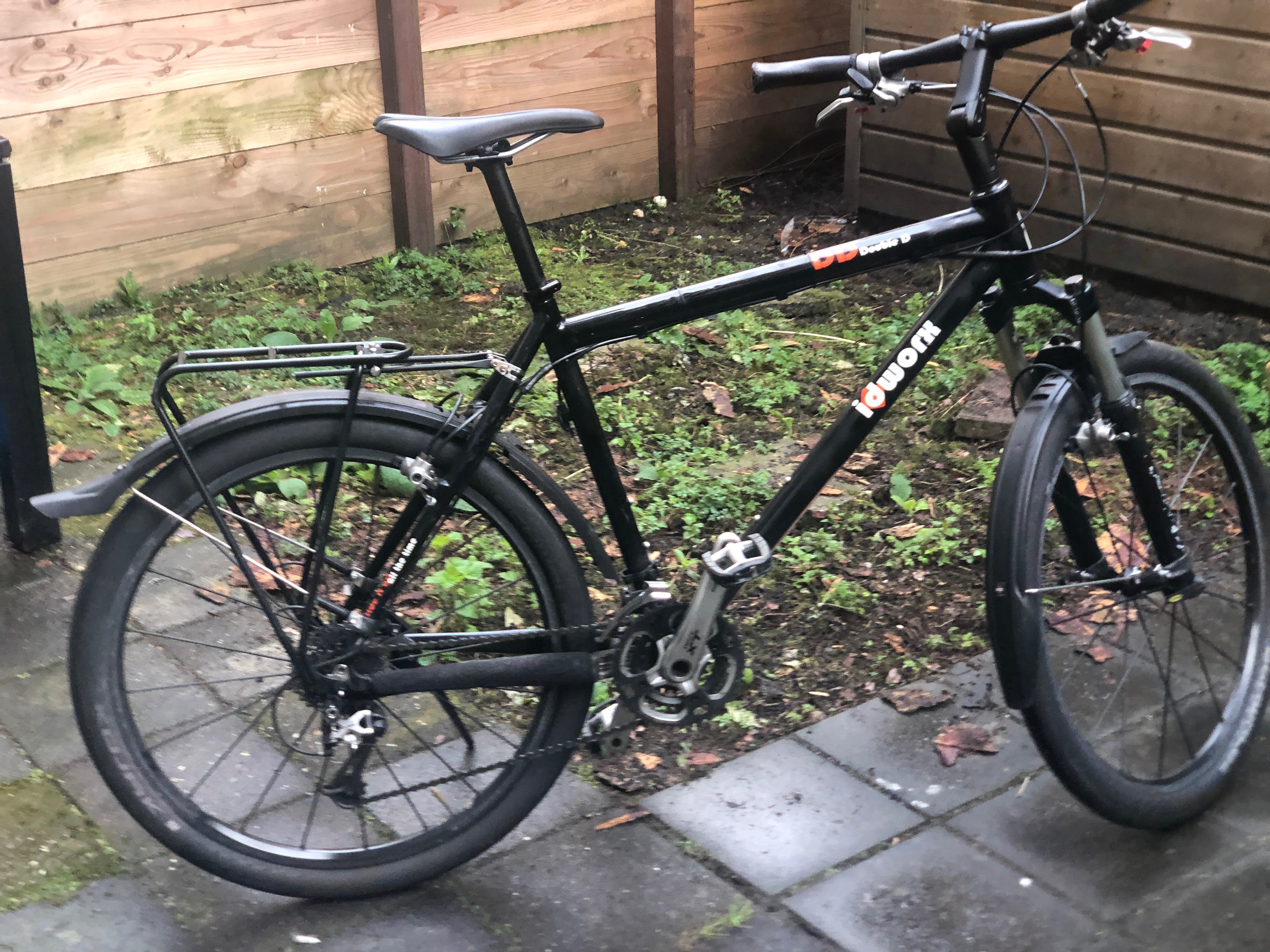 Trek 8000 met cro-mo vork. Zomer 2009, tassen doen nog steeds dienst. Tent is onlangs met pensioen gegaan. Frame hangt in de schuur. Vork is in gebruik door mijn kind van 9.
