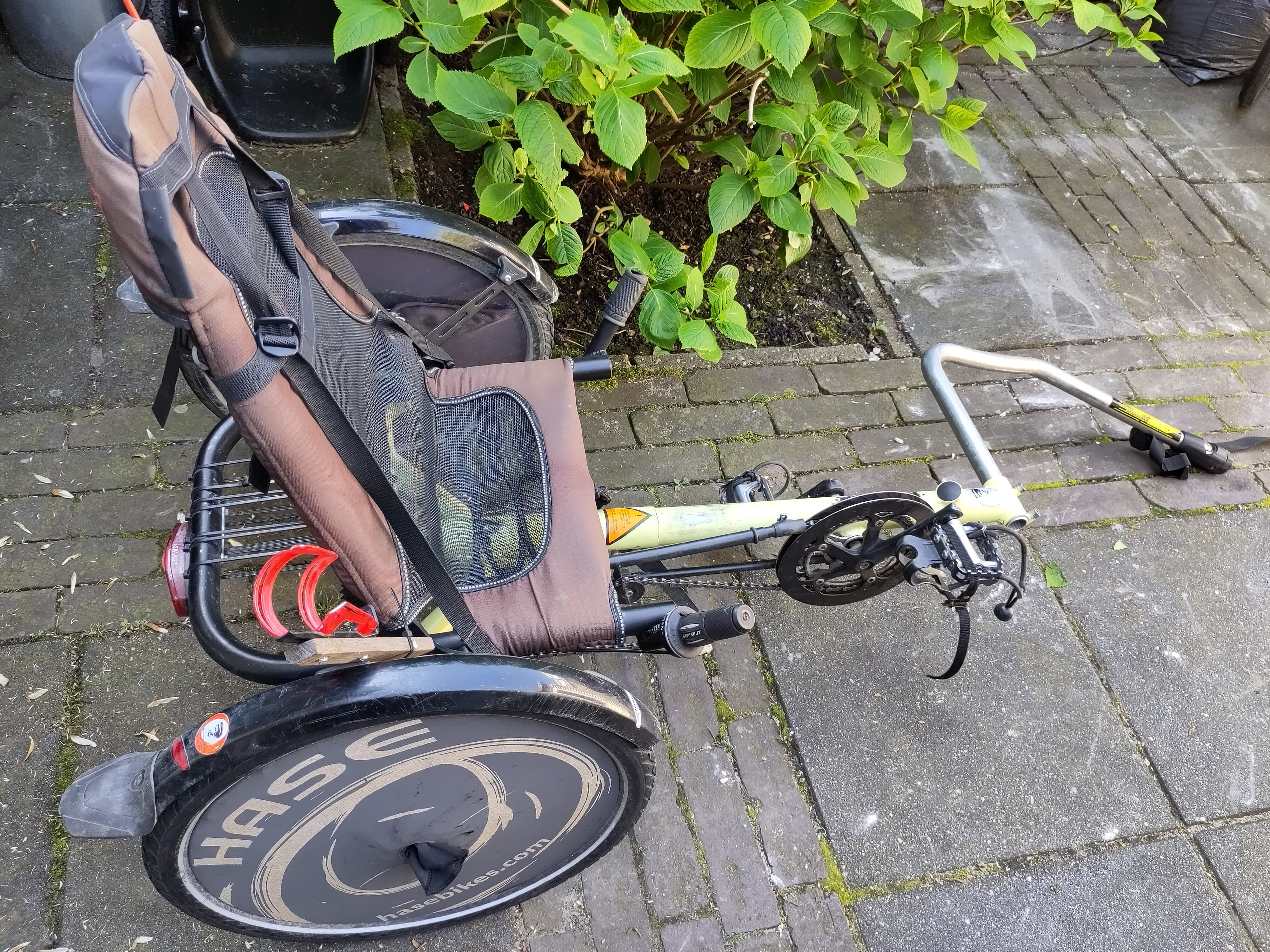 Wij verkopen onze fijne Hase Trets sleepfiets. Ideaal voor fietstochtjes of fietsvakanties met kinderen. Hij is geschikt voor kinderen van 4 tot 8 jaar. Ze zitten er heerlijk in en kunnen meetrappen, maar dat hoeft niet.