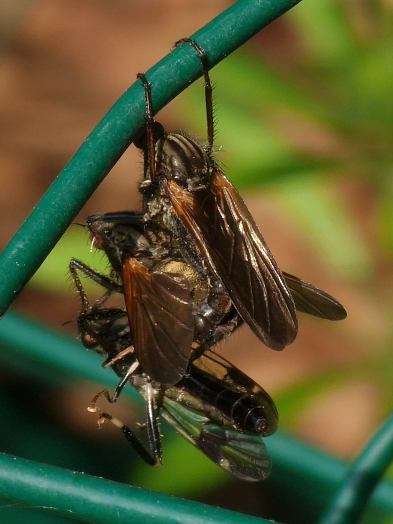 ...de echte wespvlieg brengt mimicry van een 'next level'. Hier moest ik toch even kijken om zeker te zijn dat het een vlieg was. De knotsvormige voelsprieten verraden echter dat het een vlieg is. Nochtans doet ze met haar zwarte voorpoten zelfs de lange kwinkelende voelsprieten van een wesp na.