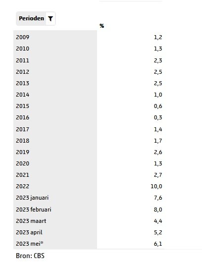 De inflatie waaraan jij refereert is neem ik aan die van de consumentenprijzen (zie onder). De consumentenprijsindex is een