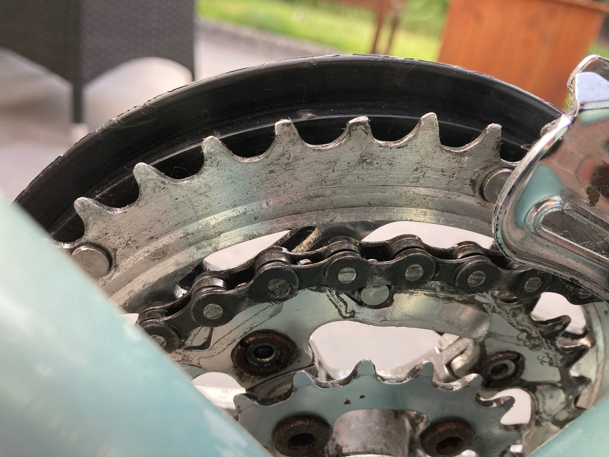 Dus: cassette, ketting en de drie voorste kettingbladen.