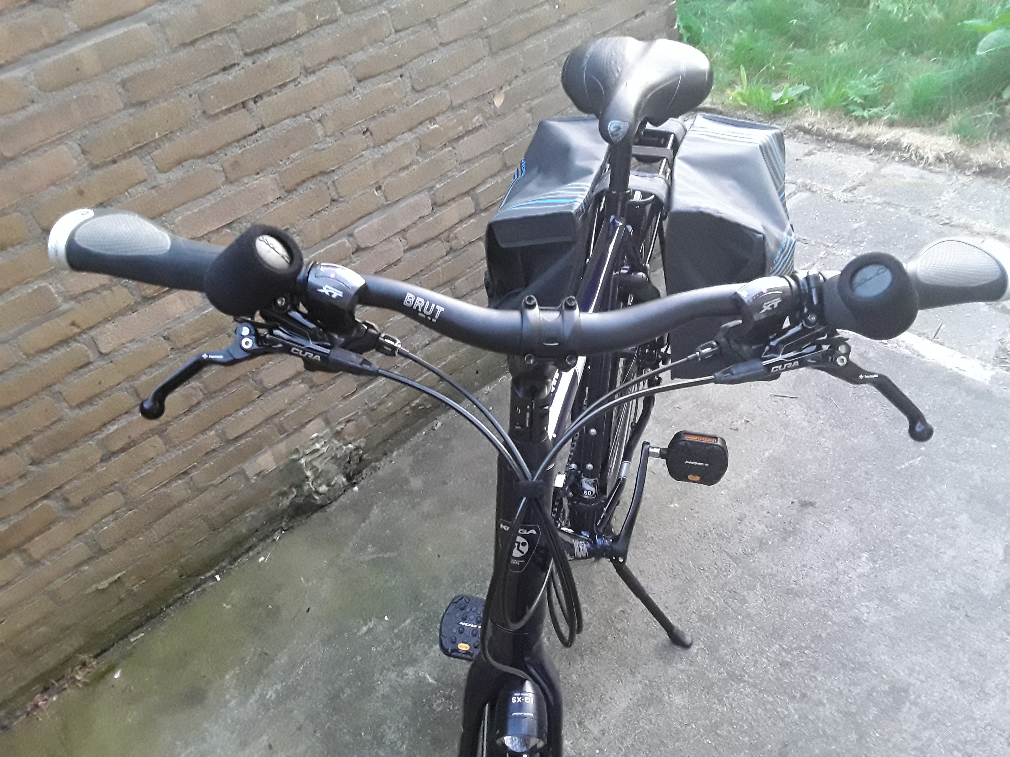 Vanochtend mijn nieuwe stuur gemonteerd. Ik had precies dezelfde (Contec Brut) op mijn oude Koga maar mijn Grandtourer heeft een stuurpen met 31,8mm klemming dus ik moest even een nieuwe bestellen. Ik heb er aan beide kanten 2cm afgehaald om van 66 naar 62 cm te gaan.