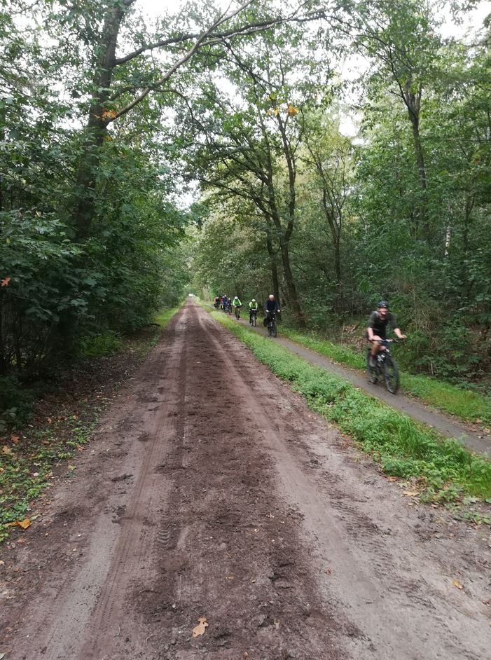 Wat hadden we vandaag een geluk met het weer. Koud maar zonnig, prachtige vergezichten, schitterende herfstkleuren. En opnieuw een leuk en gezellig rondje. Met zijn elven (René en Geke, Kees, JanH, Marloes, Rikie, Annelies, Cilia, Edith, Marianne en Petra) vertrokken we even na tienen vanaf het Peerd, waar we vlak voor vertrek nog even een groepsfoto maakten. Daarna door de Onlanden, in de buurt van Norg over de heide en eerst op weg naar café Hingstman in Zeijen voor een lekkere kop koffie/thee met gebak. Lekker kletsen, bijpraten, lachen. Daarna een doorsteek naar Taarlo, over het schitterende Balloërveld en via de bossen naar Annen. Tussendoor nog een boterhammenstop op een es, waar Jan onze fietsen vereeuwigde. Achterlangs Zuidlaren, door Midlaren en Noordlaren en in Onnen via de gravelweg naar Haren alwaar we bij mij aan de snert konden. Die ging er met veel gesmul en gesmikkel weer goed in. Het laatste stuk terug naar Groningen, waar we tegen vier uur ons rondje om het Peerd fietsten. Dank aan René en Kees voor de gezamenlijke productie van de route. En natuurlijk hebben we de foto's nog.