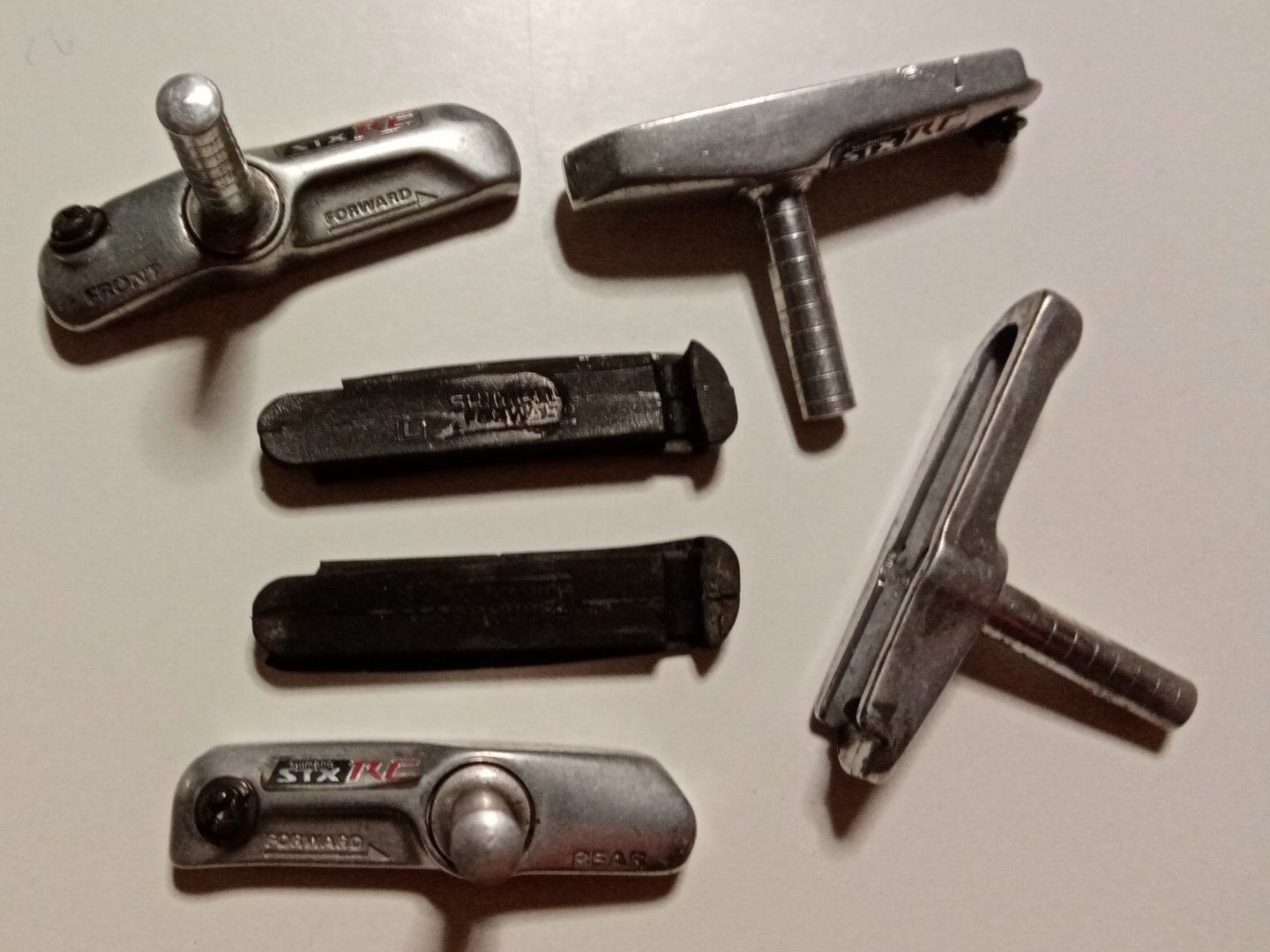 De remklauwen op de voorvork moeten voor de buizen gemonteerd worden omdat er achter die buizen bij dit type remmen geen toegang van boven voor de remkabel is en wellicht ook te weinig ruimte onder het frame. Het tegen de buizen aan geduwd worden door de remkracht i.p.v. eraf getrokken worden 'voelt' eigenlijk wel logischer aan maar hier kan dat daarom niet. Achter die buizen zou namelijk ook dat aspect van de lange kant van de blokjes tegen die buizen stuiten vermijden bij lange kant achter.