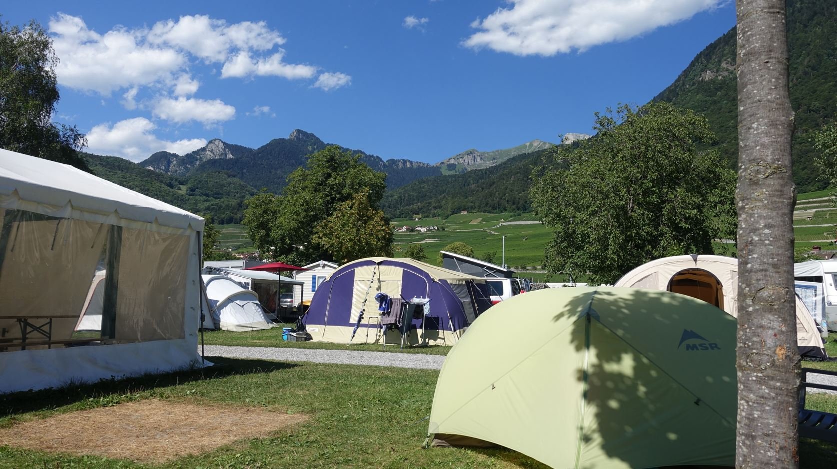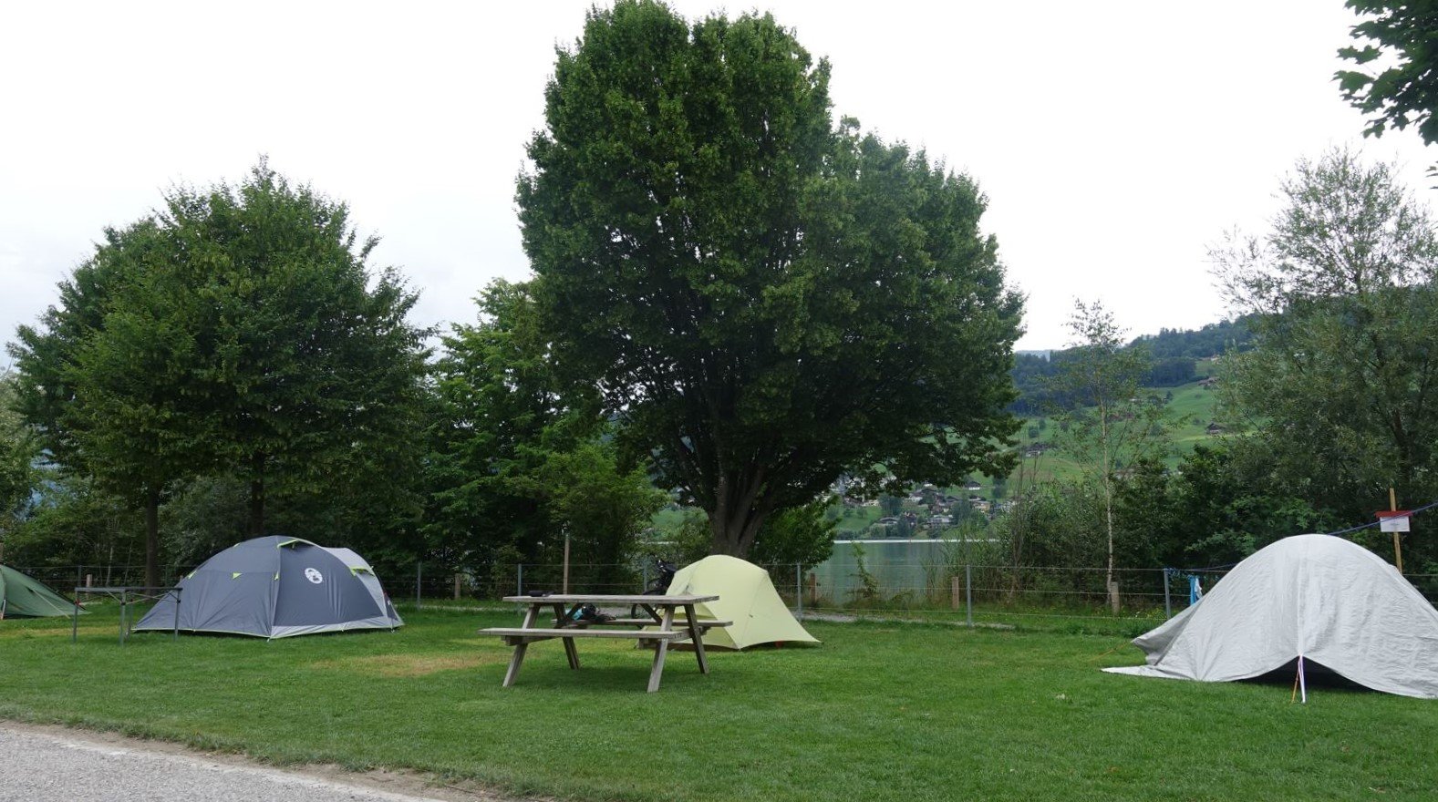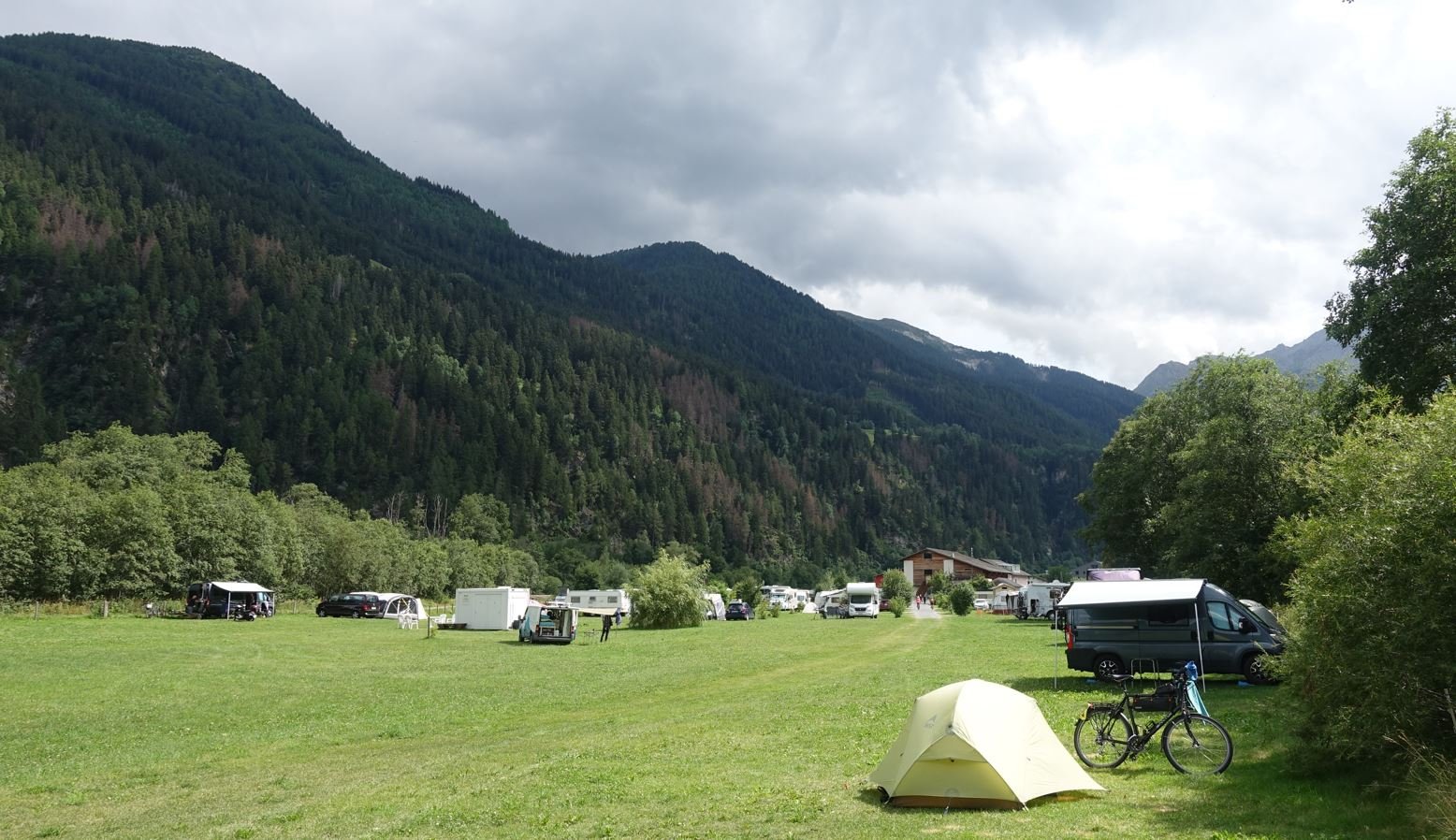 Camping in Thusis was vol maar dat gold bij lange na niet voor het tentenveldje. Daar ook de eerste vakantiefietsers ontmoet, een echtpaar uit Nederland.