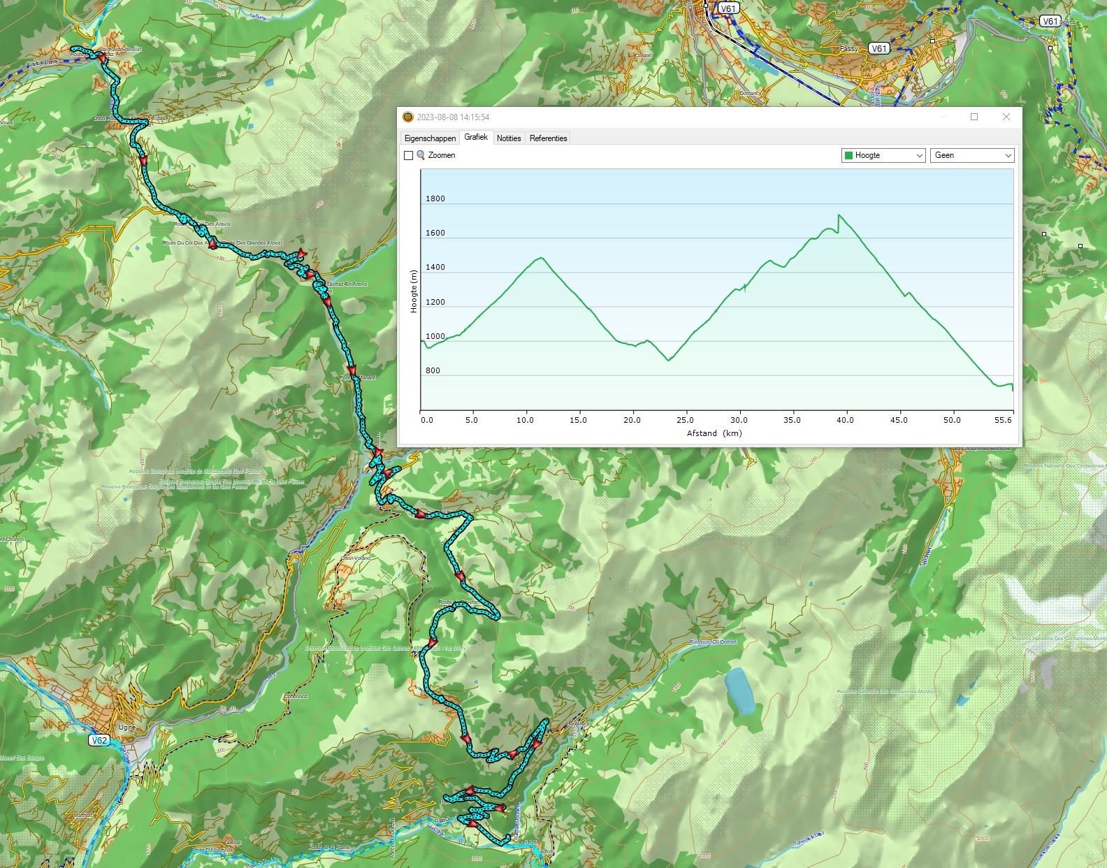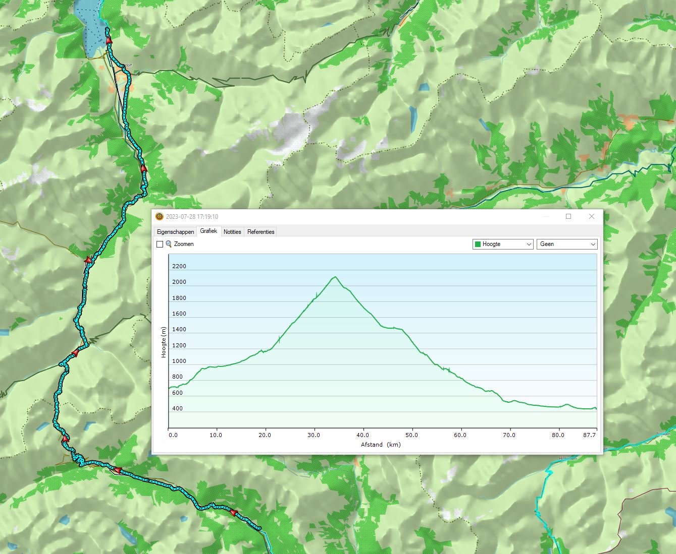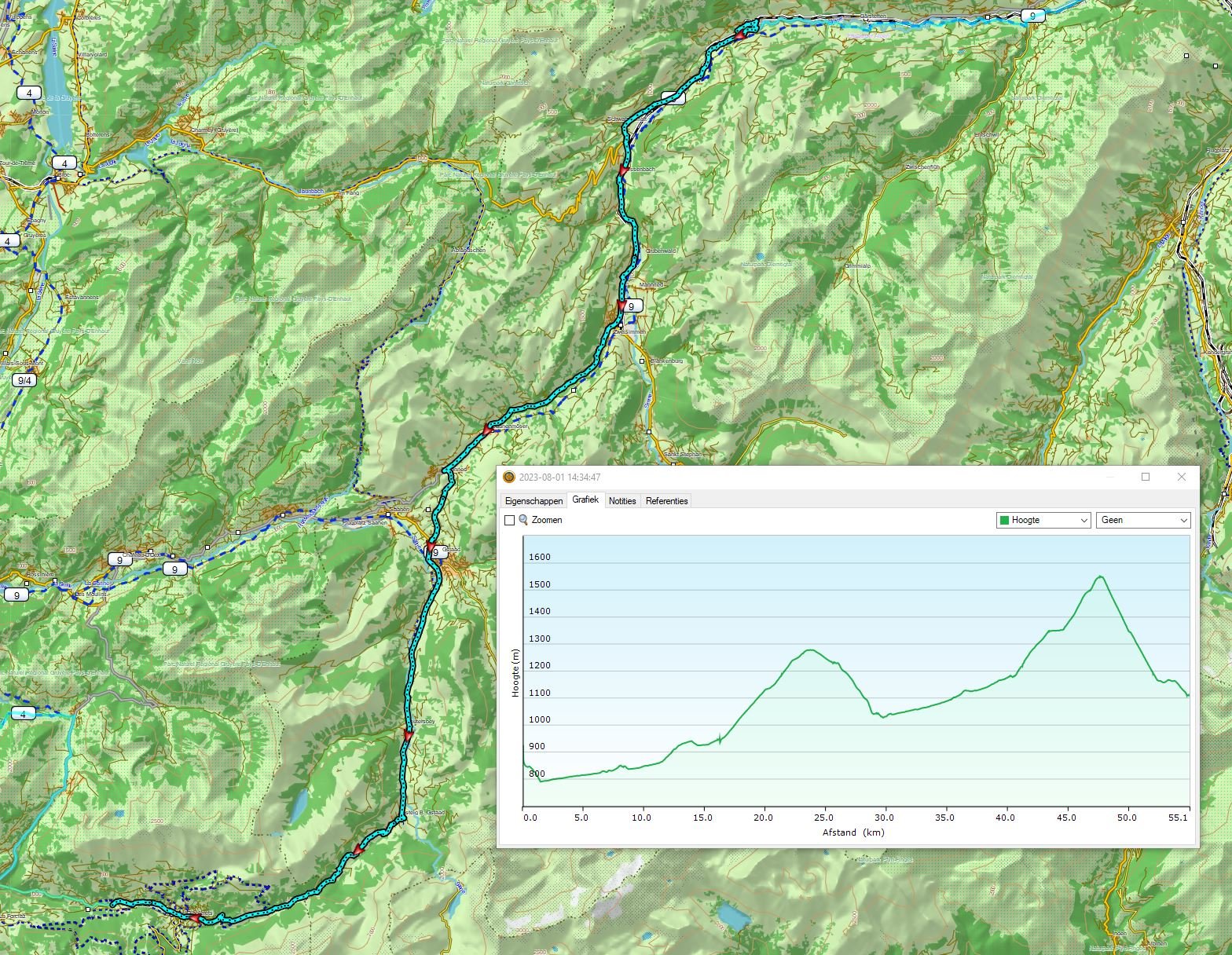 De klim naar de top was 10 km lang, waarna een afdaling van 45 km. Deels over een drukke weg met twee lange tunnels, dat was geen pretje.