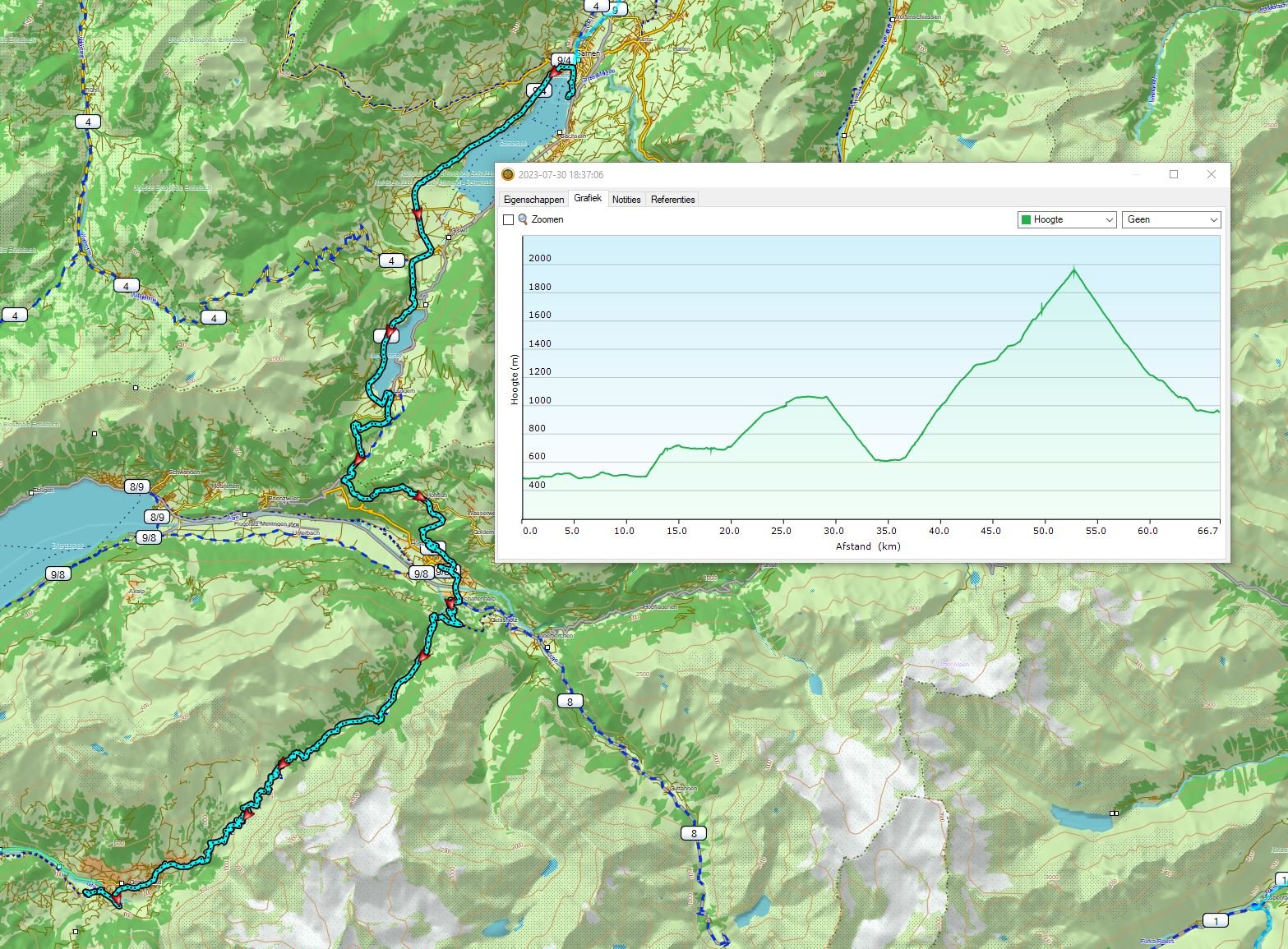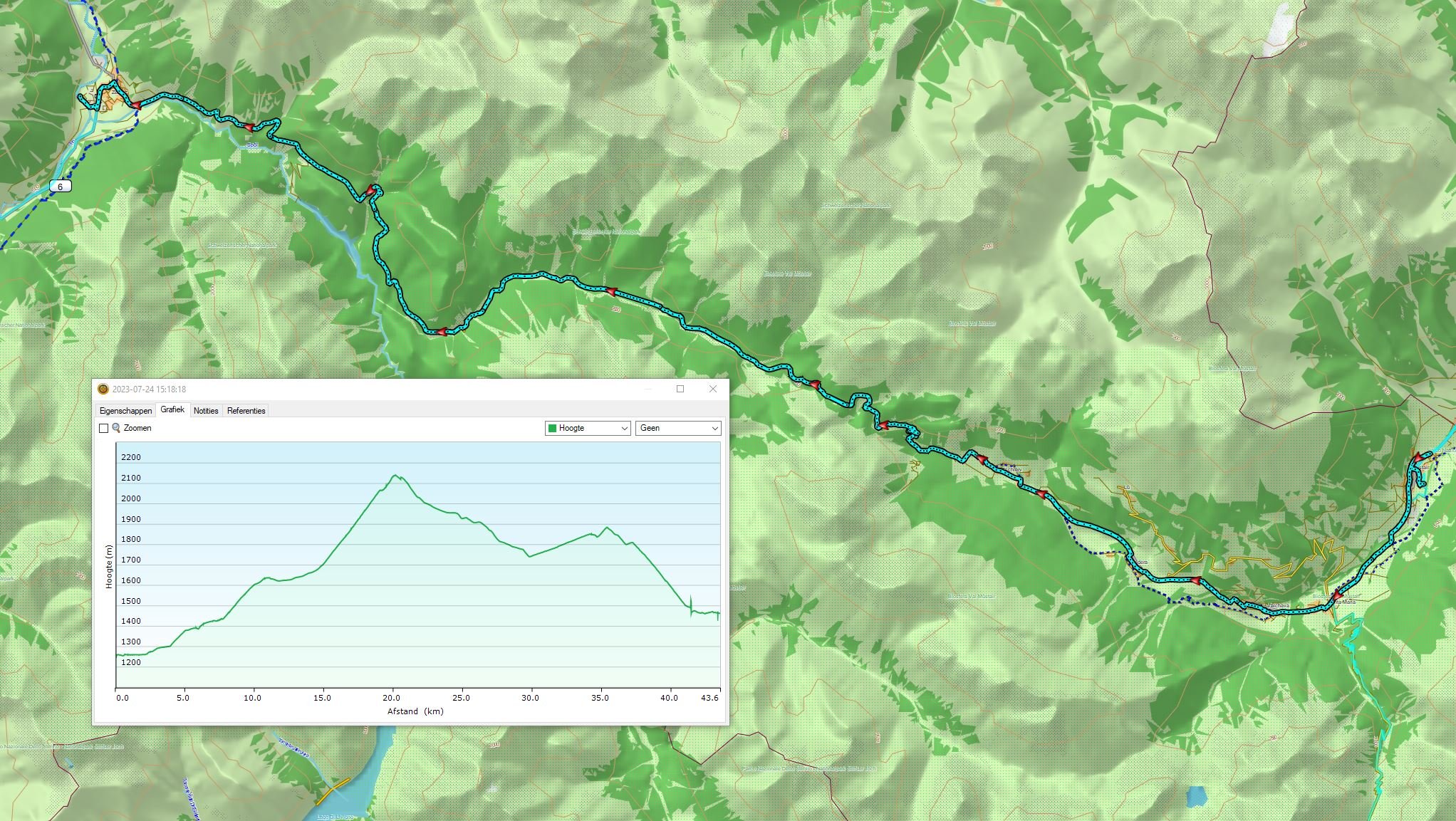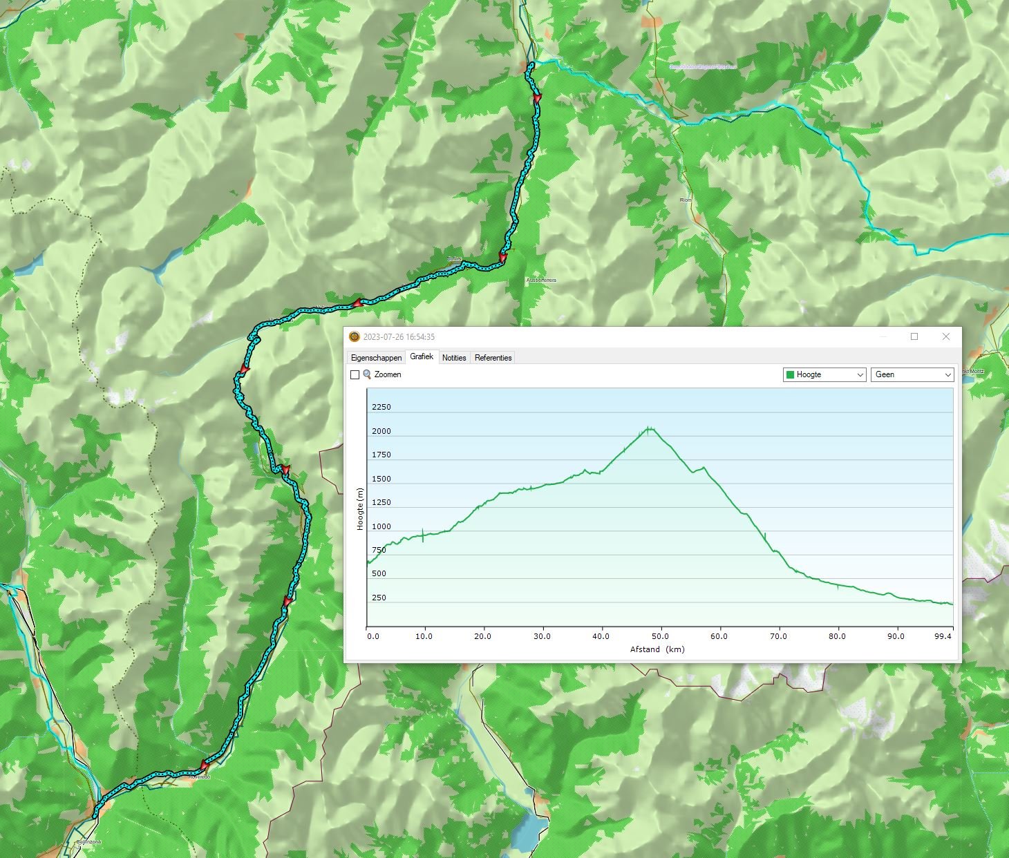 De klim naar de top was 10 km lang, waarna een afdaling van 45 km. Deels over een drukke weg met twee lange tunnels, dat was geen pretje.