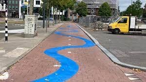 De kronkelende lijnen zijn echter binnen de korstte keren na o.a. klachten van de Fietserbond verwijderd.